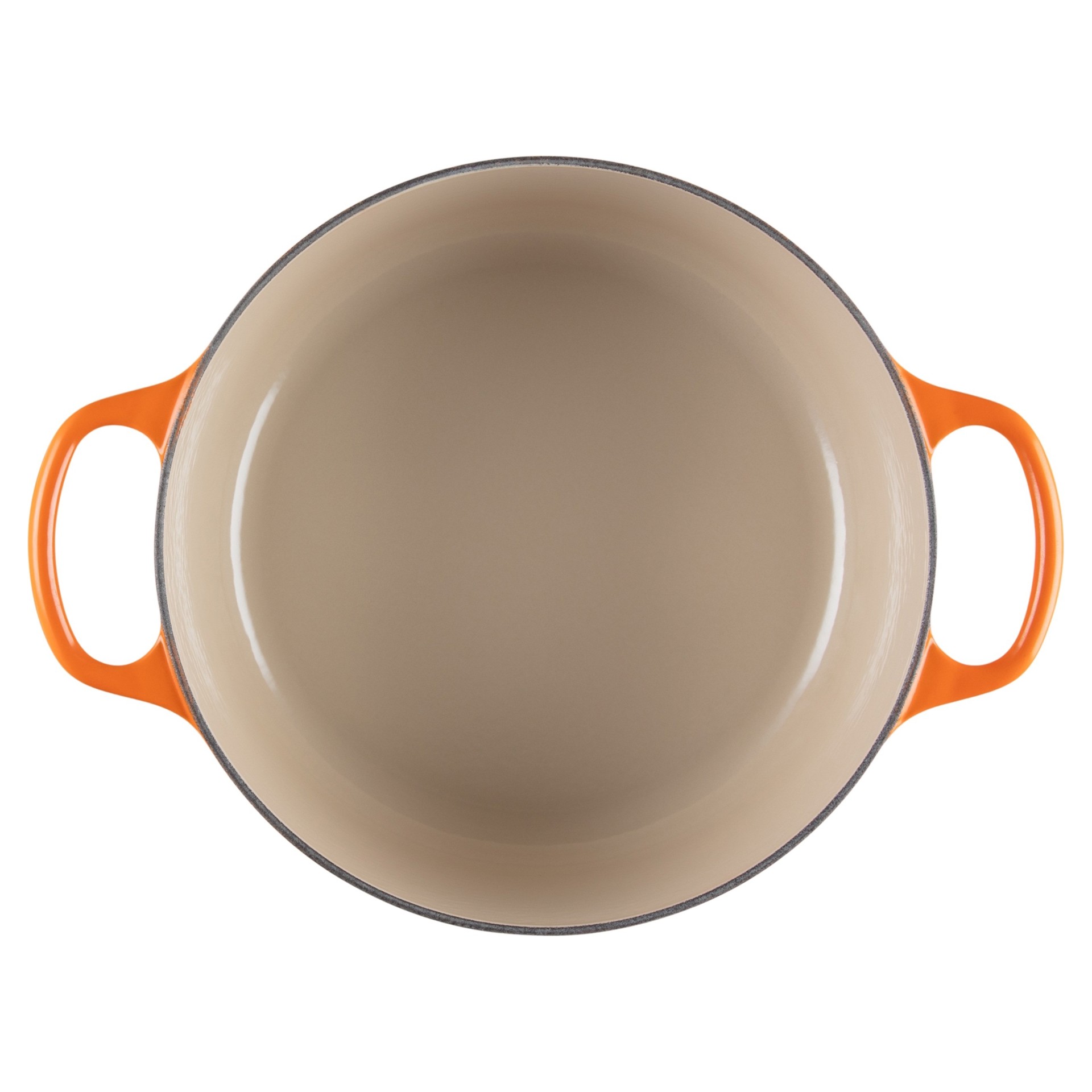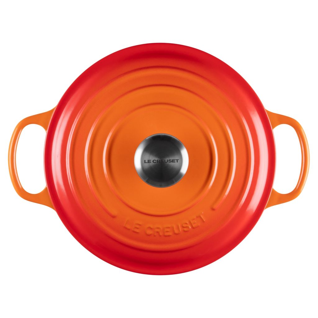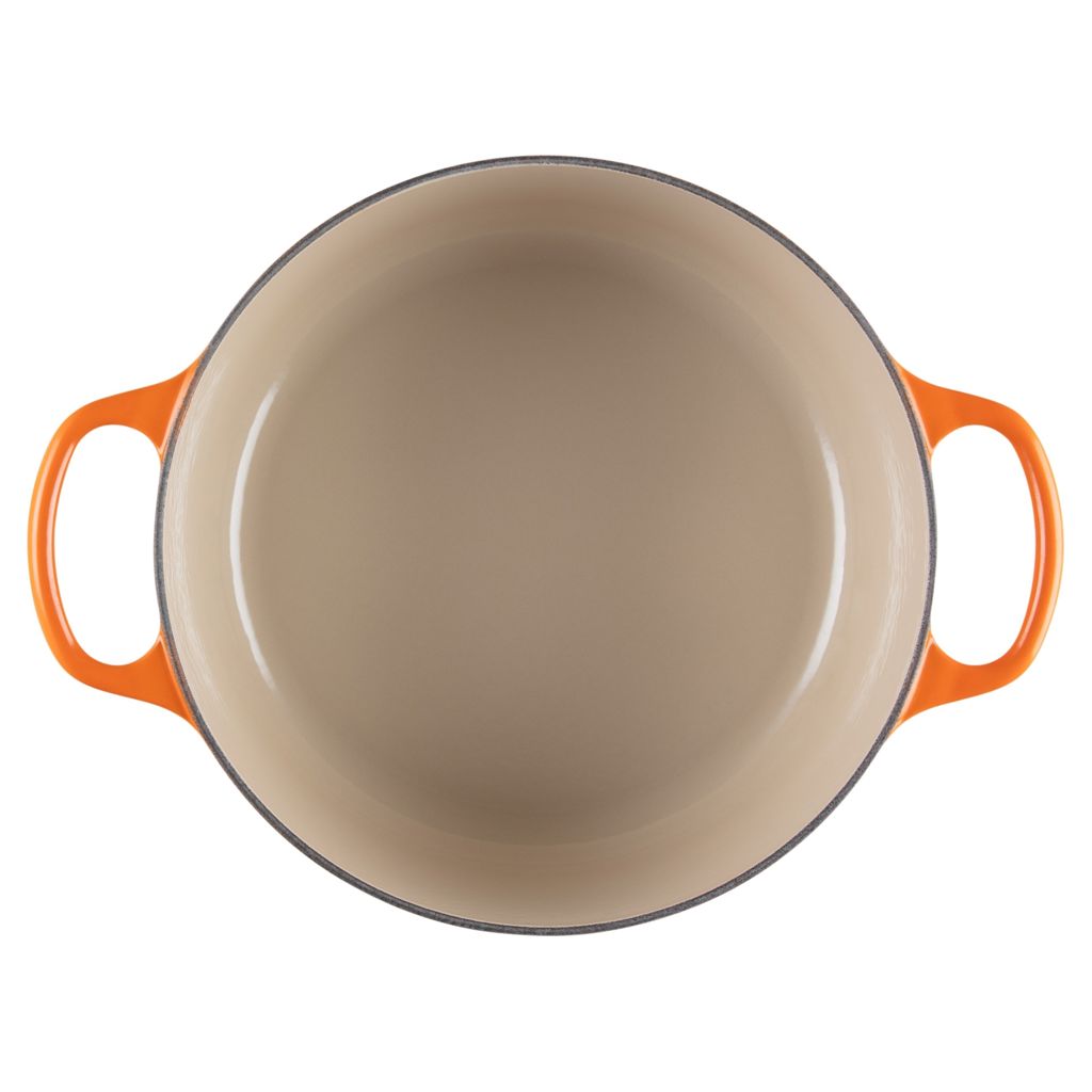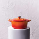 Au four, sur la cuisinière ou à table, la fonte émaillée emblématique est prisée autant pour son émail extérieur résistant à l´écaillage que pour son exceptionnelle rétention de la chaleur préservant les saveurs et attendrissant les aliments.