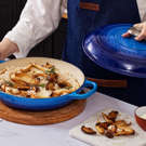 Au four, sur la cuisinière ou à table, la fonte émaillée emblématique est prisée autant pour son émail extérieur résistant à l´écaillage que pour son exceptionnelle rétention de la chaleur préservant les saveurs et rendant les aliments tendres.