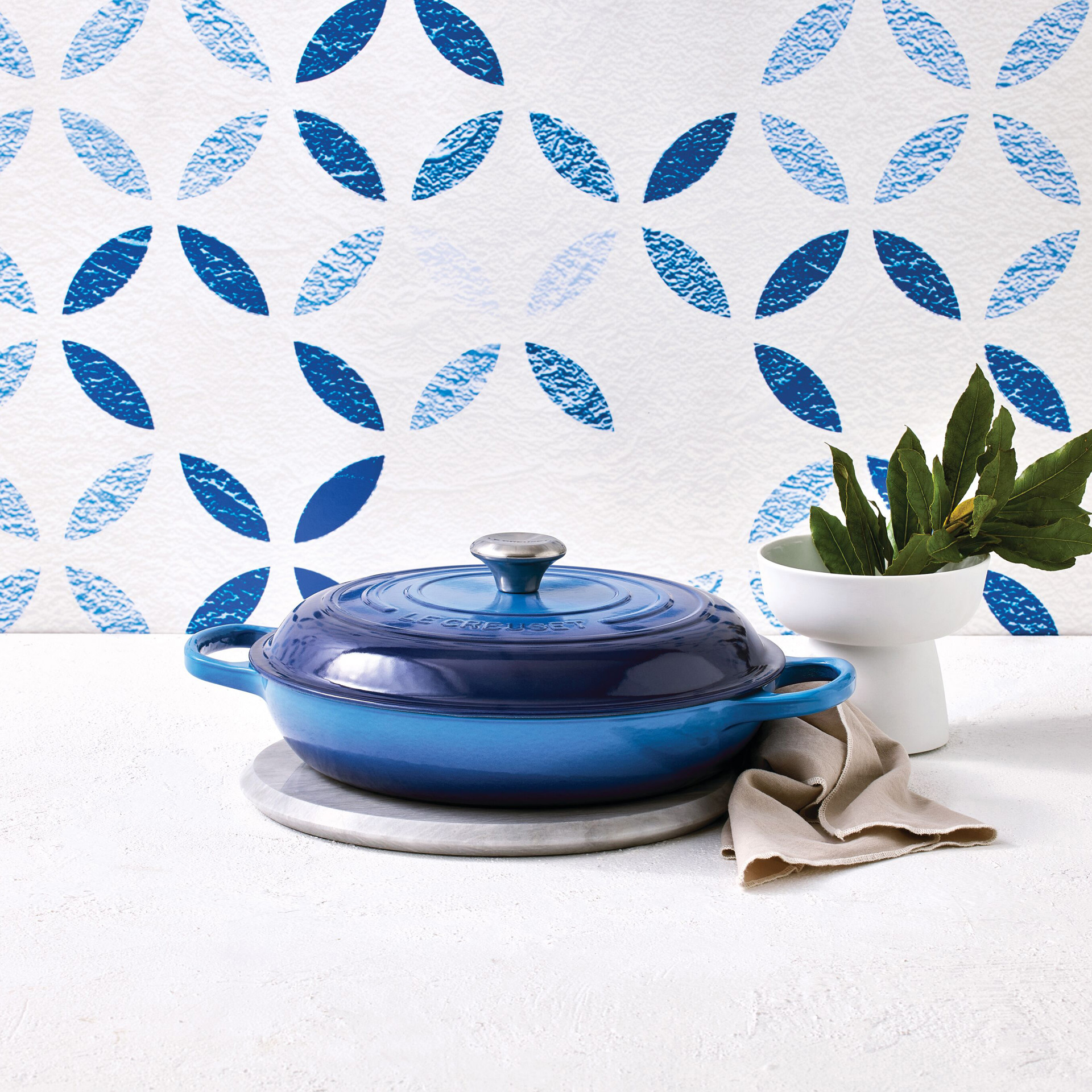 Le braisage consiste à saisir la viande et les légumes à température élevée puis de couvrir afin de terminer la cuisson lentement, de façon à créer un jus naturellement. Avec sa base peu profonde et son couvercle en dôme, la braisière Le Creuset convient parfaitement à ce type de cuisson.