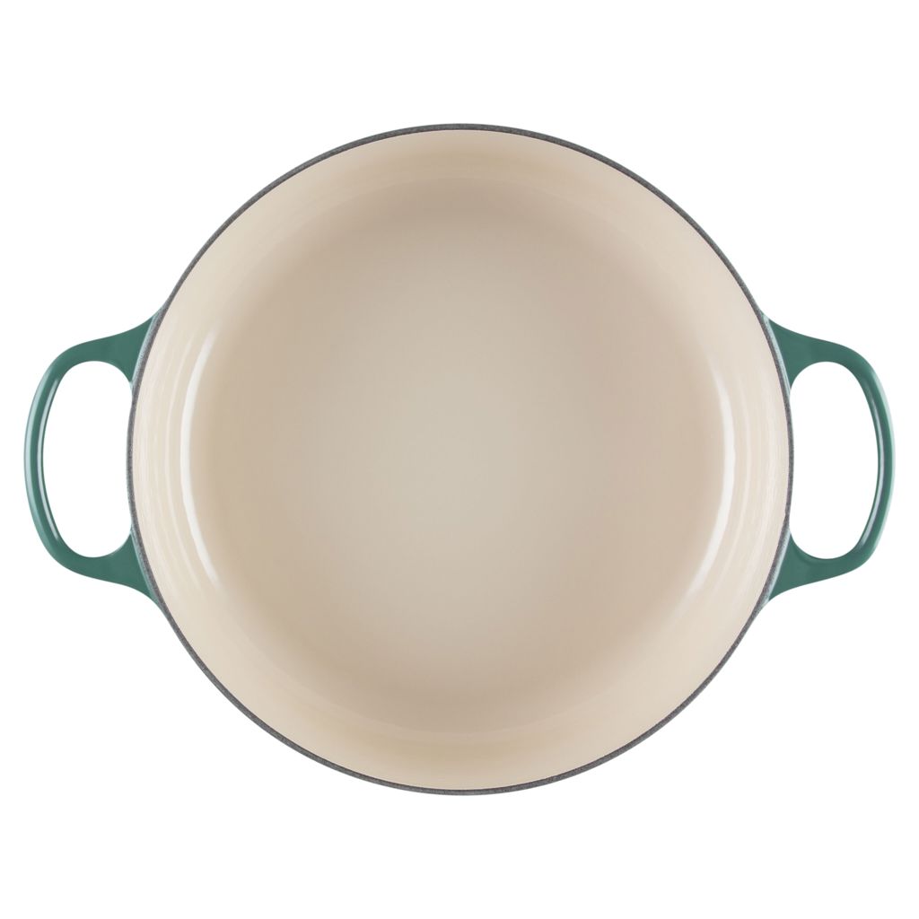 La cocotte ronde peu profonde offre une grande surface de cuisson permettant de saisir de grandes quantités de viande, et peut même être utilisée pour laisser mijoter les sauces grâce à ses parois élevées. Son couvercle ajusté emprisonne la chaleur tandis que son émail intérieur couleur sable permet de surveiller le degré de cuisson des aliments pendant qu’ils cuisent lentement.