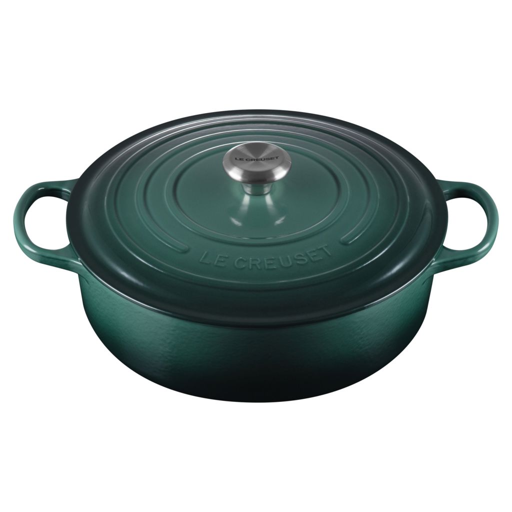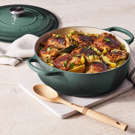 Conçue en fonte émaillée, la cocotte ronde peu profonde est extrêmement durable et revêtue d’un émail extérieur résistant aux ébréchures. La cocotte est reconnue comme étant l’un des articles de cuisson les plus polyvalents depuis son invention au 18e siècle.