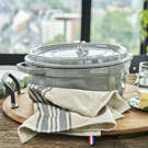 Mesurant 37 cm (14,6 pouces) de large, 18 cm (7,1 pouces) de haut et 42,8 cm (16,9 pouces) de long, poignées comprises, cette cocotte a une capacité de 8 litres (8,5 quarts) et est idéale pour présenter les plats à table grâce à son design épuré et sa couleur grise classique.
