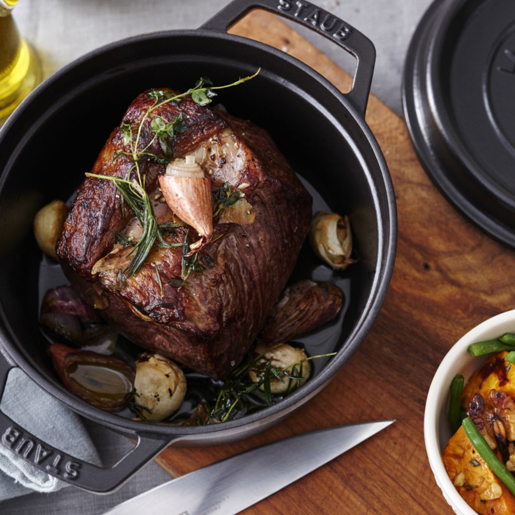 Avec la cocotte STAUB, vous pouvez saisir, cuire, cuire au four et servir dans un seul plat, passant sans effort du four à la table. La fonte émaillée ne nécessite aucun assaisonnement, chauffe uniformément et retient l'humidité, garantissant des aliments humides et parfaitement cuits à chaque fois.