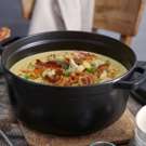 La cocotte traditionnelle en fonte n'est pas seulement adaptée aux plats français, elle est aussi très facile à utiliser et invite à l'expérimentation. Les soupes, les omelettes et les plats cuits au four bénéficient des excellentes propriétés de conduction de la chaleur de la fonte, ce qui rend les viandes braisées particulièrement juteuses et les légumes savoureux et goûteux.