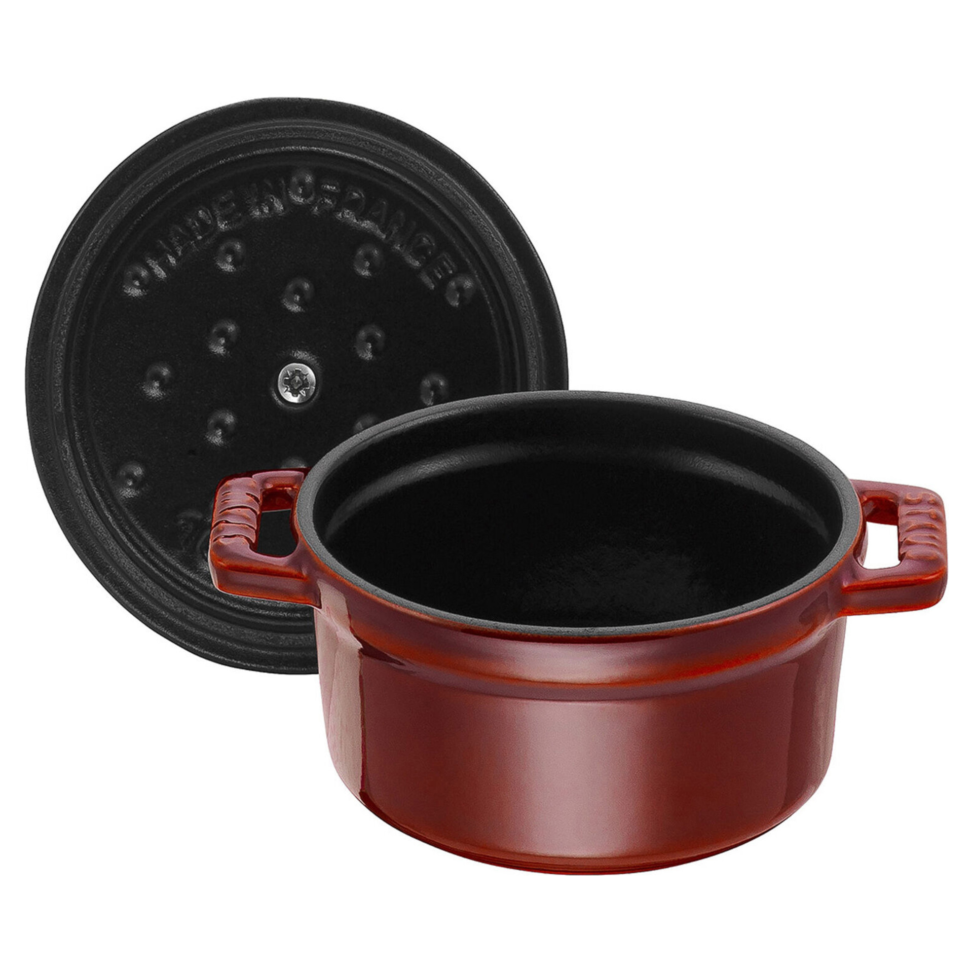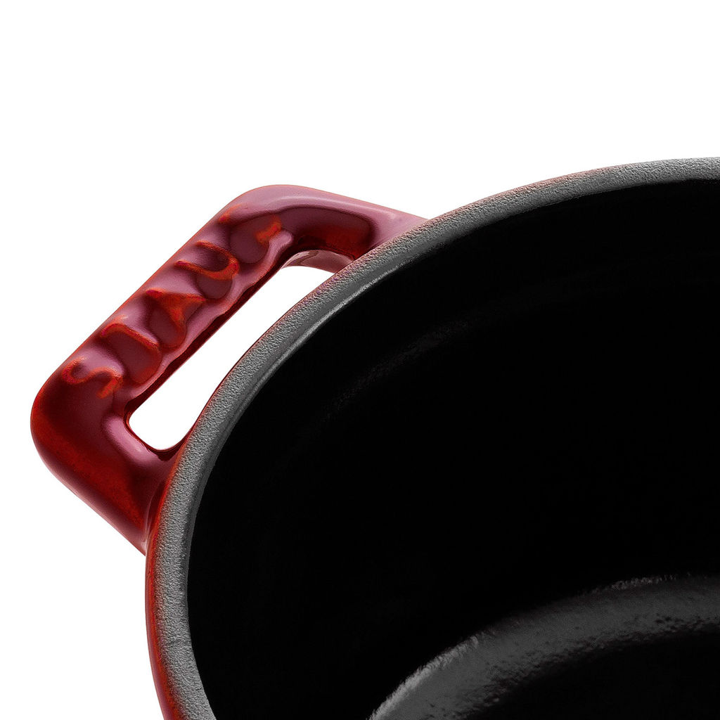 L'intérieur en émail noir mat spécial de Staub et le couvercle à pointes auto-éclairantes garantissent un brunissement et un braisage parfaits pour des aliments à la saveur exquise.
