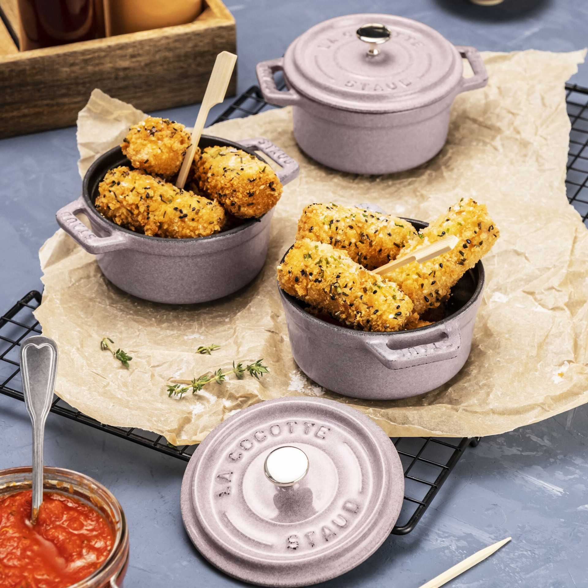 L'intérieur en émail noir mat spécial de Staub et le couvercle à pointes auto-éclairantes garantissent un brunissement et un braisage parfaits pour des aliments à la saveur exquise.