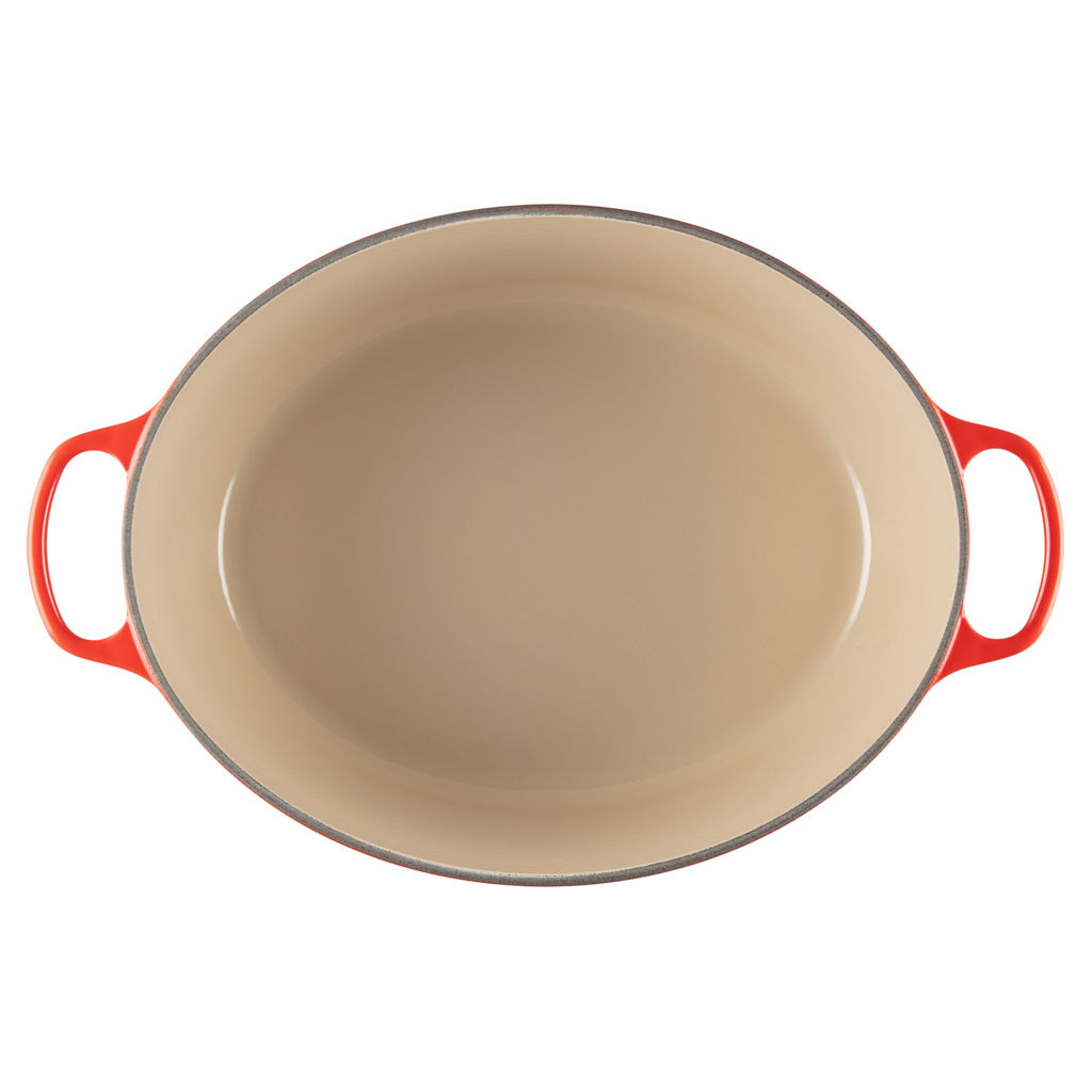 Au four, sur la cuisinière ou à table, la fonte émaillée emblématique est prisée autant pour son émail extérieur résistant à l'écaillage que pour son exceptionnelle rétention de la chaleur préservant les saveurs et rendant les aliments tendres.