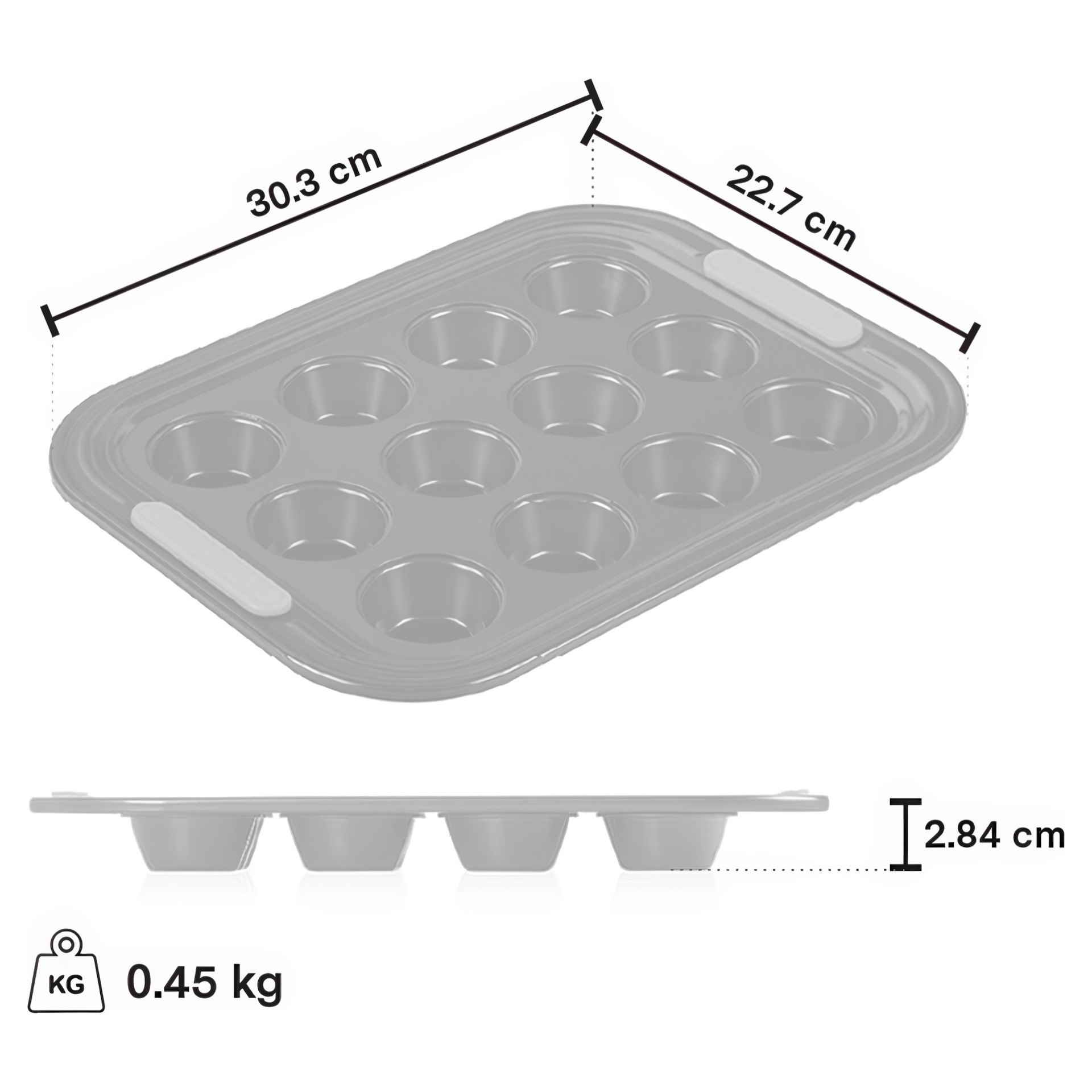 Notre moule pour douze mini-muffins convient parfaitement à la préparation de mini-muffins, de cupcakes et d'une variété de délices au format miniature pour toute la famille.