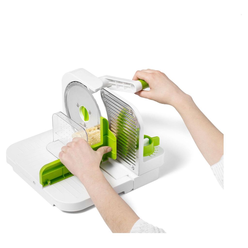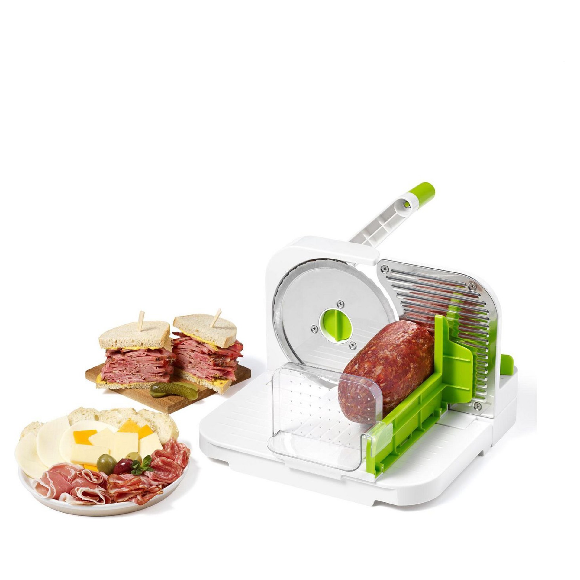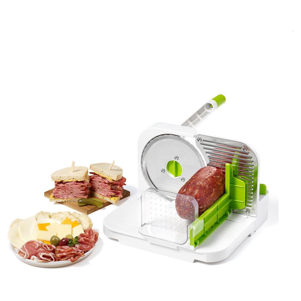 • Fait des tranches uniformes : épaisseur des tranches reglables, style charcuterie à des tranches de 2,5 cm