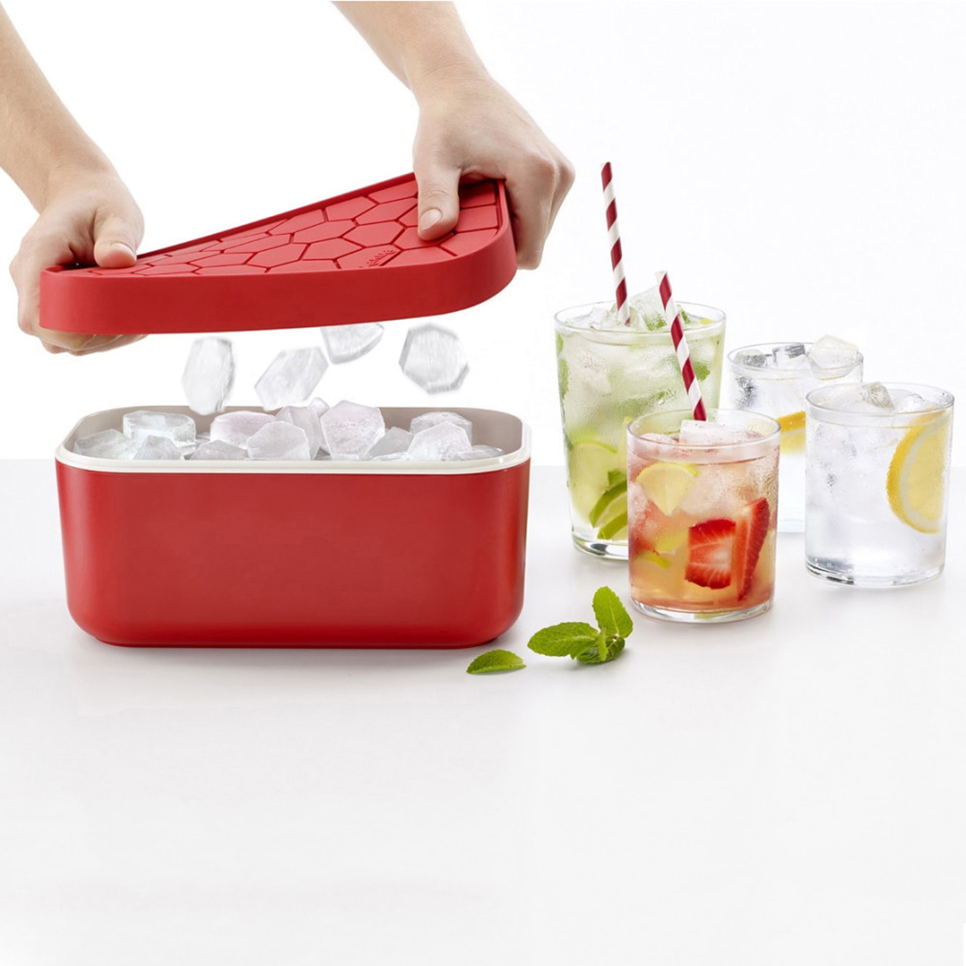 Bac à glace 3 en 1 Lekue Red, plateau en silicone et boîte de rangement