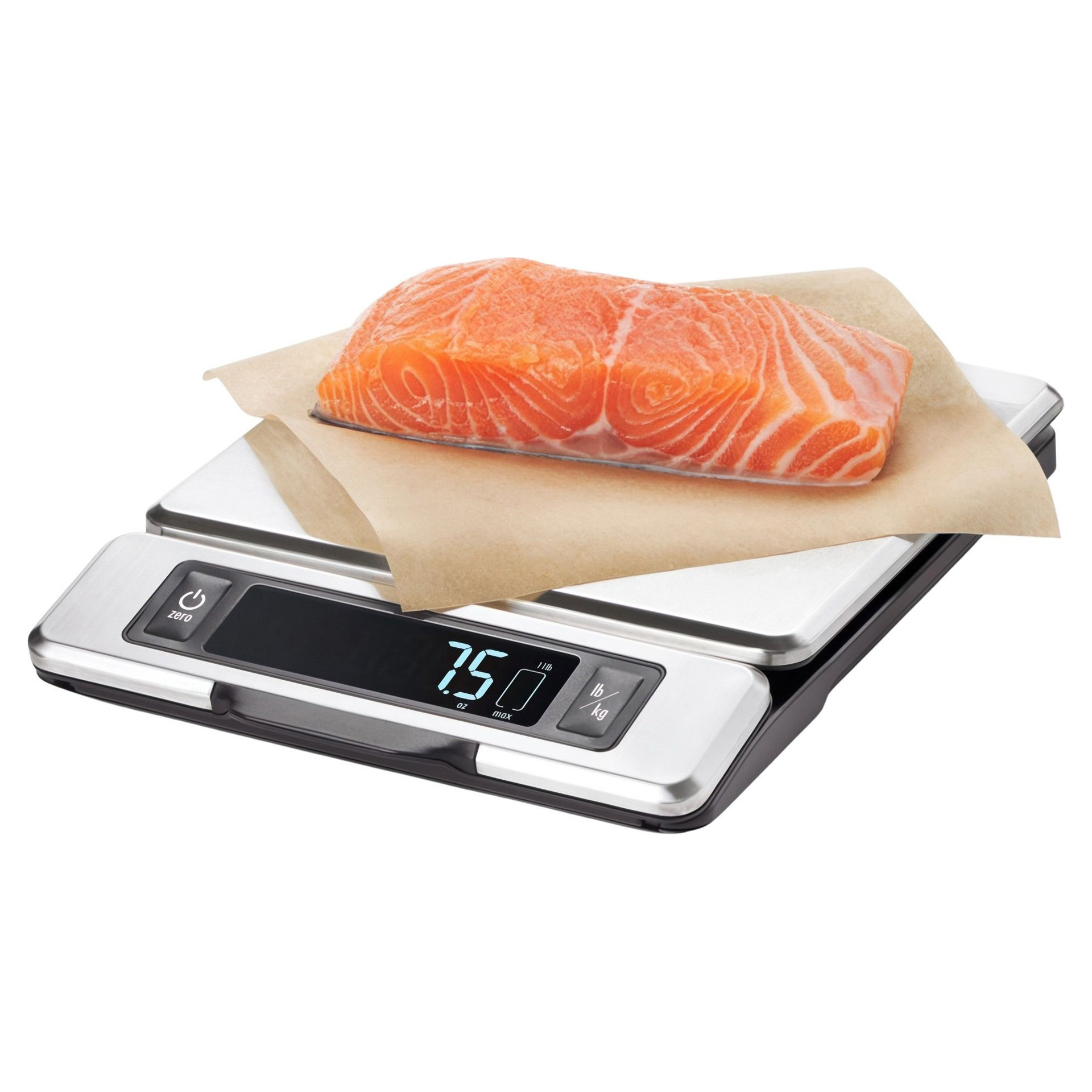 • L'écran est facile à lire à avec ses gros chiffres à incréments en grammes, onces, livres et kilogrammes