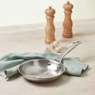 Grâce à son centre en aluminium réagissant à la chaleur, la poêle à frire en acier inoxydable est particulièrement utile pour saisir la viande, la volaille et les fruits de mer à température très élevée.