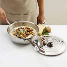 La sauteuse du chef en acier inoxydable retient la chaleur de façon remarquable à mesure que les sauces et les soupes mijotent à la perfection. Son couvercle emprisonne la chaleur et l’humidité, et fait en sorte que vos mets ne manquent pas de saveur.