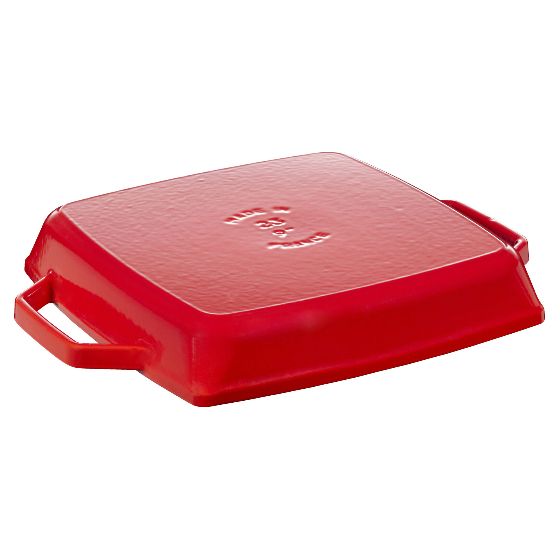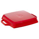 La poêle à frire carrée avec deux poignées mesure 28 cm (11 in) et présente une finition attrayante. Les deux poignées vous permettent de la déplacer sans effort du four à la table, créant ainsi une pièce maîtresse rouge cerise sur votre table à manger.