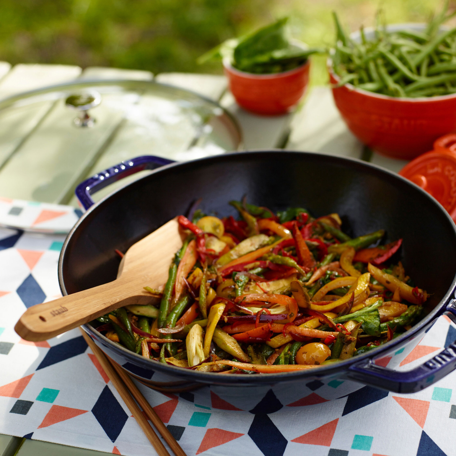 Les amateurs de cuisine peuvent révéler leurs talents cachés avec ce wok en fonte de Staub, car la fonte emmagasine merveilleusement la chaleur et la restitue de manière régulière et uniforme.