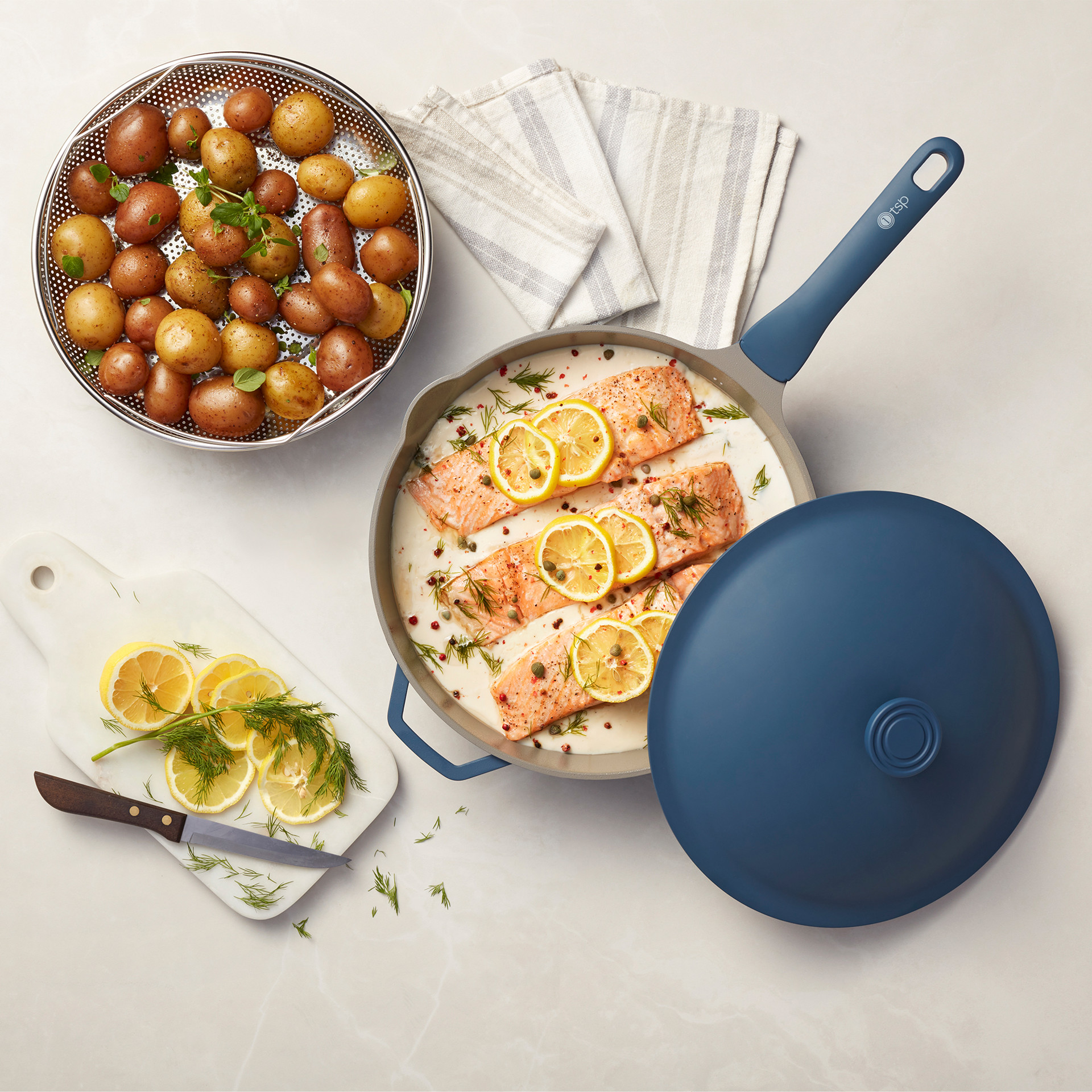 Poêle profonde antiadhésive The Rock avec couvercle et panier à vapeur - 11 po