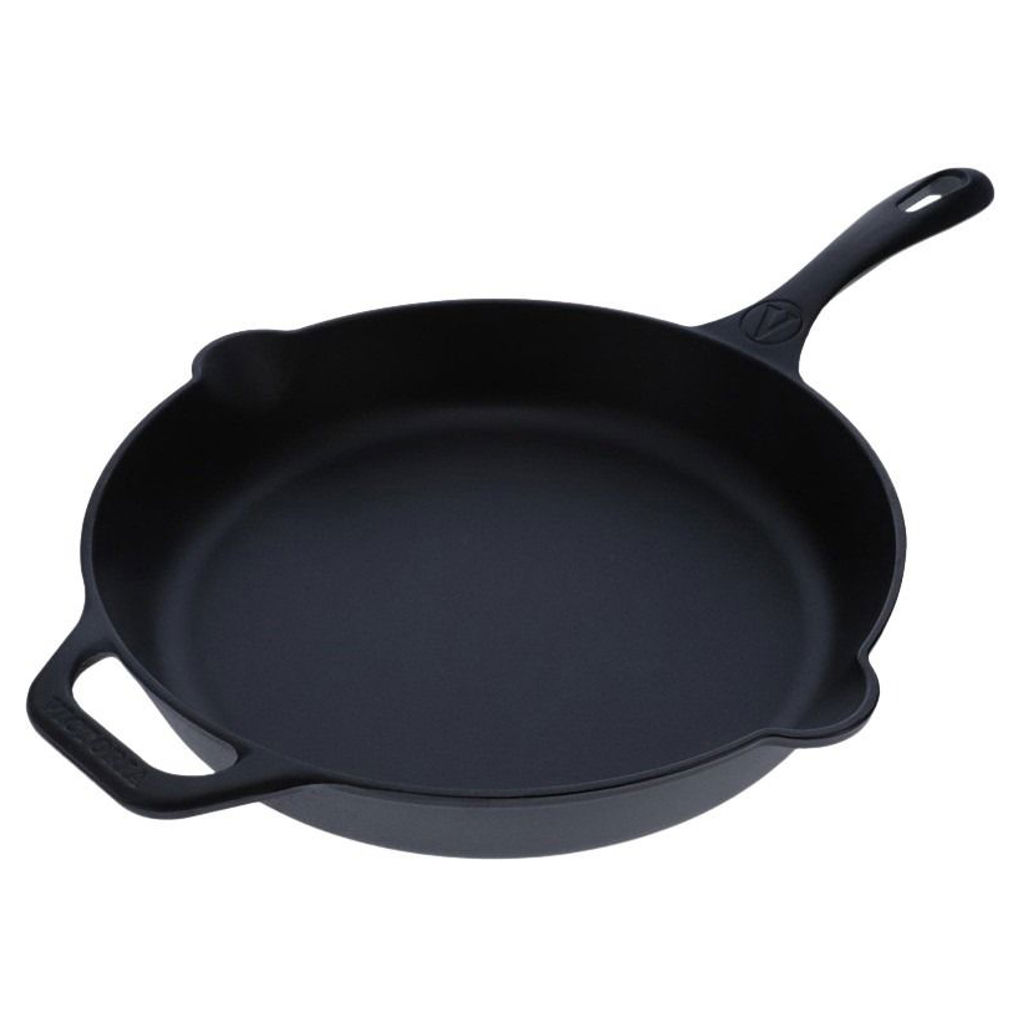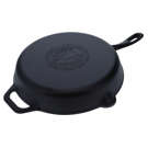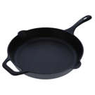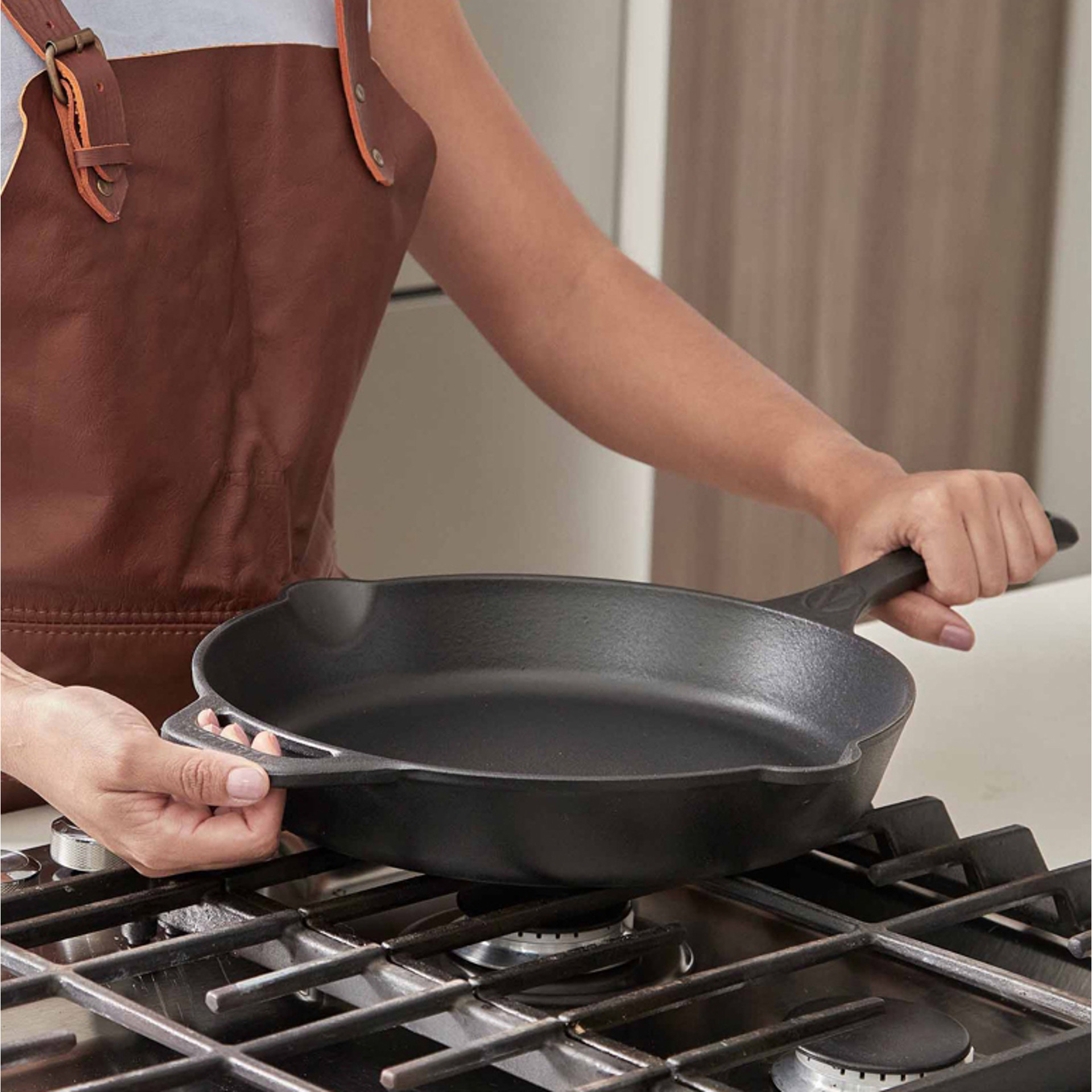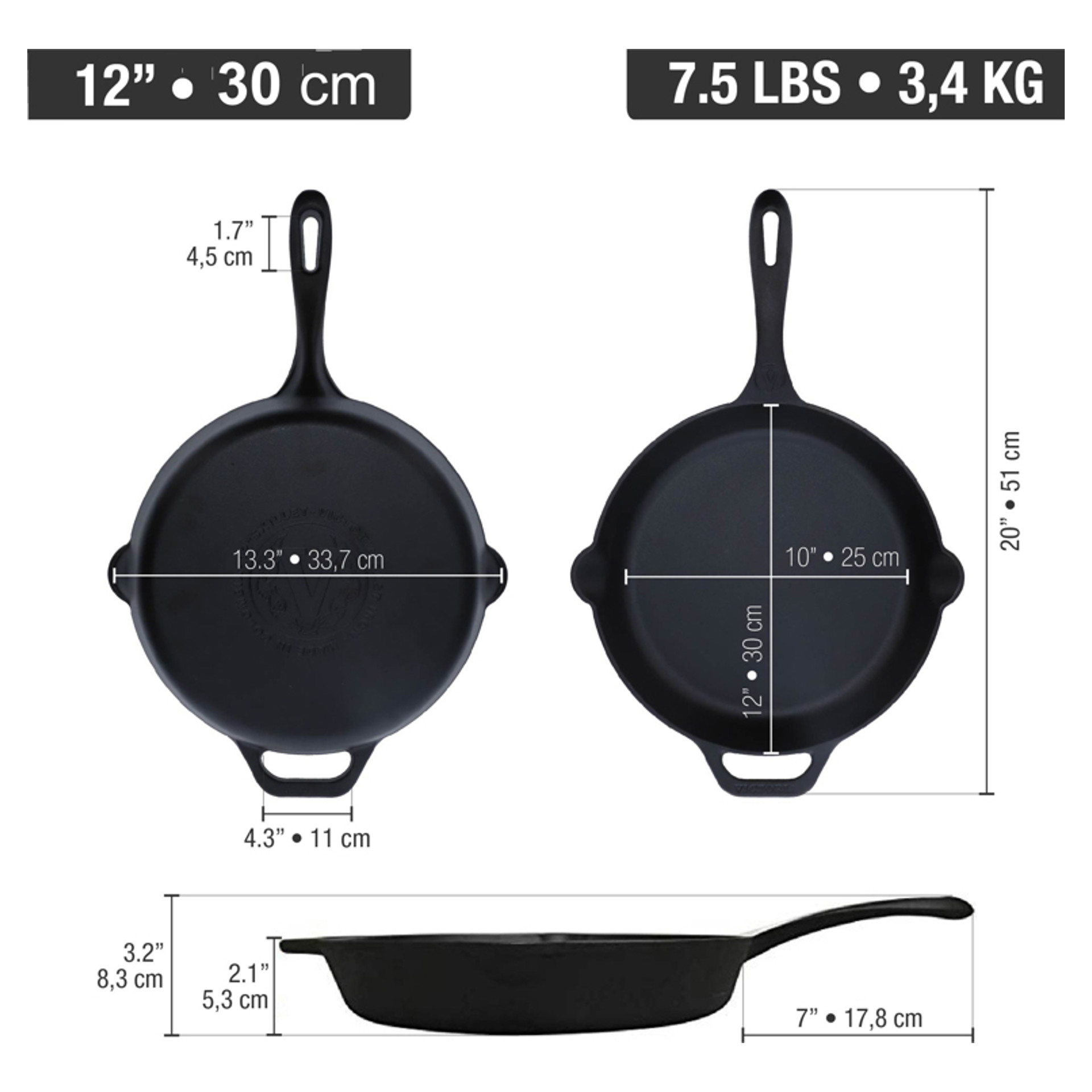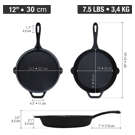 Poêle de 30 cm en fonte assaisonnée, conçue pour offrir une excellente rétention de la chaleur et une durabilité supérieure aux poêles traditionnelles. Robuste et polyvalente, elle convient aussi bien à la cuisson quotidienne qu’aux recettes plus élaborées.