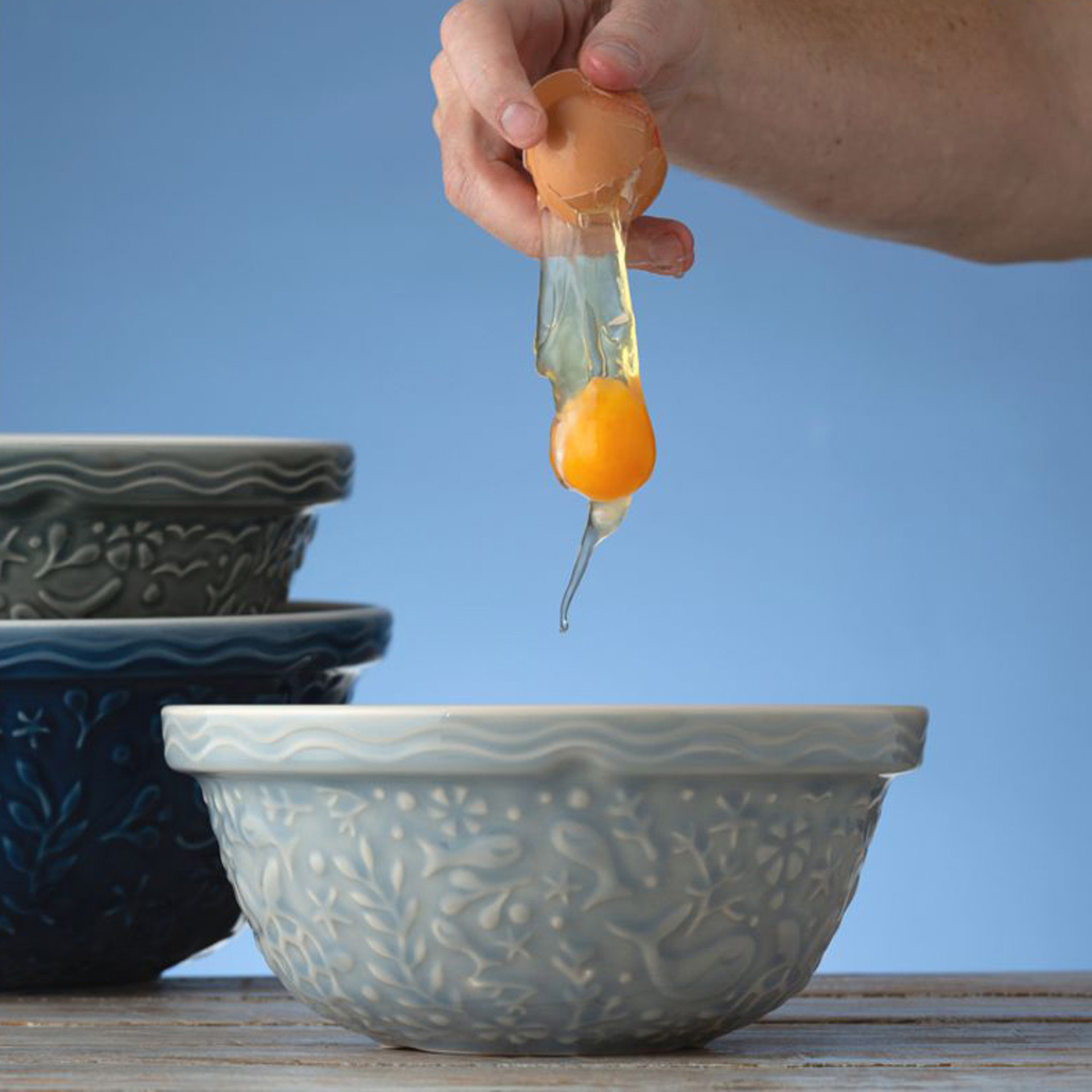 Bol à mélanger de 2 L, en céramique bleu. Délicieusement détaillé et finement embossé de motifs inspirés des prairies, il apporte une touche de charme à la cuisine tout en restant pratique au quotidien.