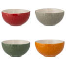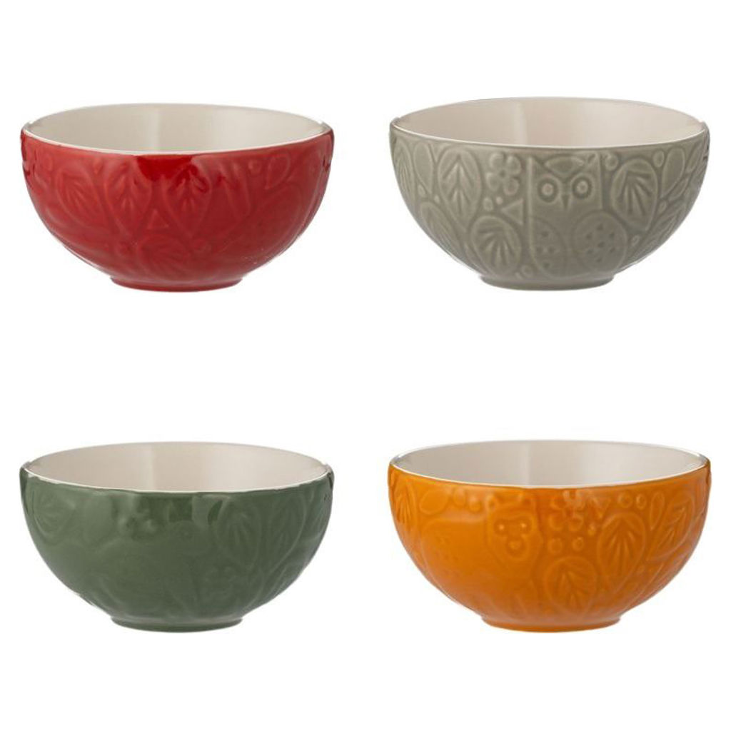 Mini bols, jeu de 4, capacité de 175 ml chacun, coloris assortis, en grès. Délicieusement détaillés et finement embossés de motifs inspirés de la forêt, ils ajoutent une touche décorative et chaleureuse à la cuisine.