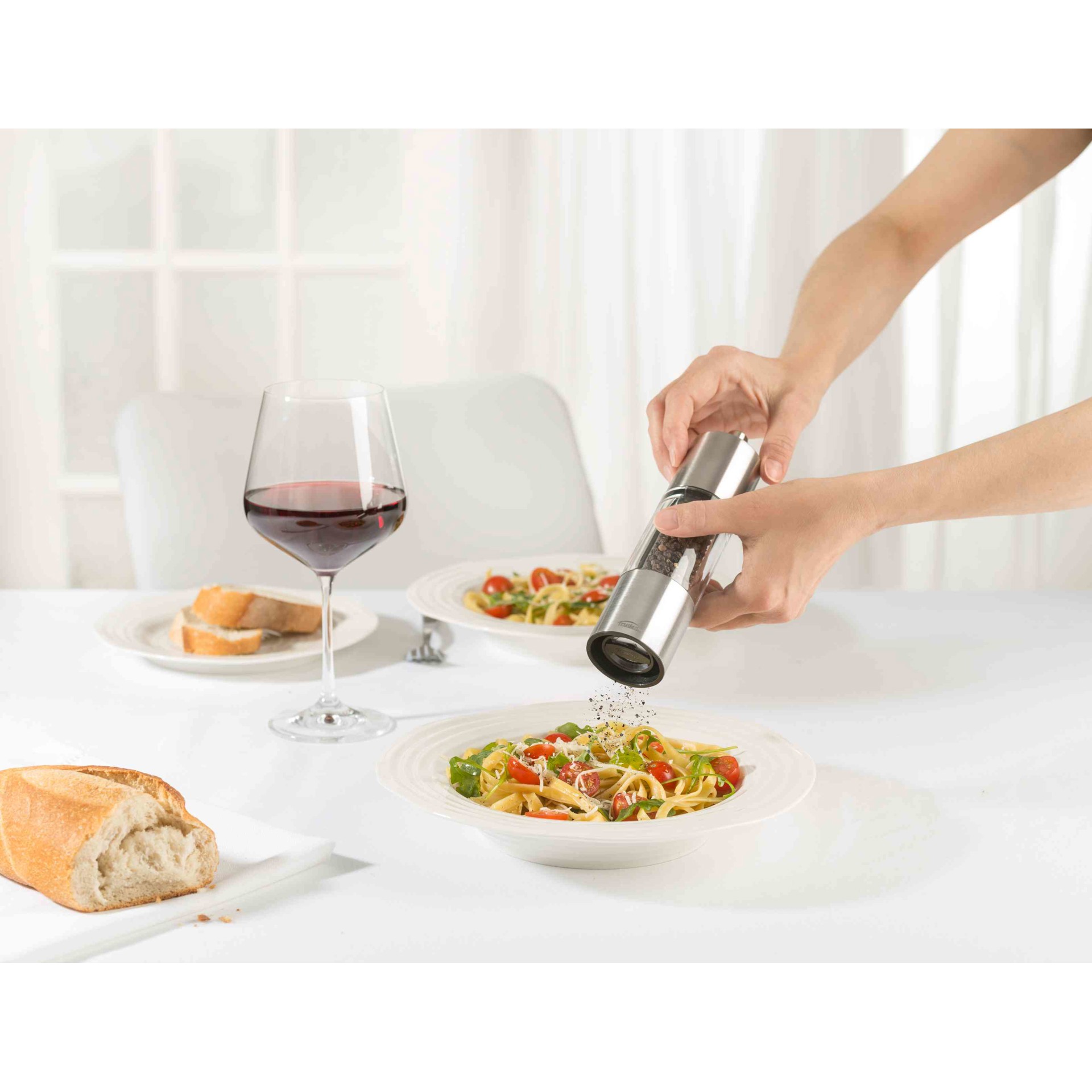 CONSEIL DU CHEF : Préparez un généreux plat de spaghettis sauce bolognaise pour la famille ou vos invités et remplissez le moulin Adiago de flocons de piments forts séchés pour un goût relevé auquel ils ne pourront résister.