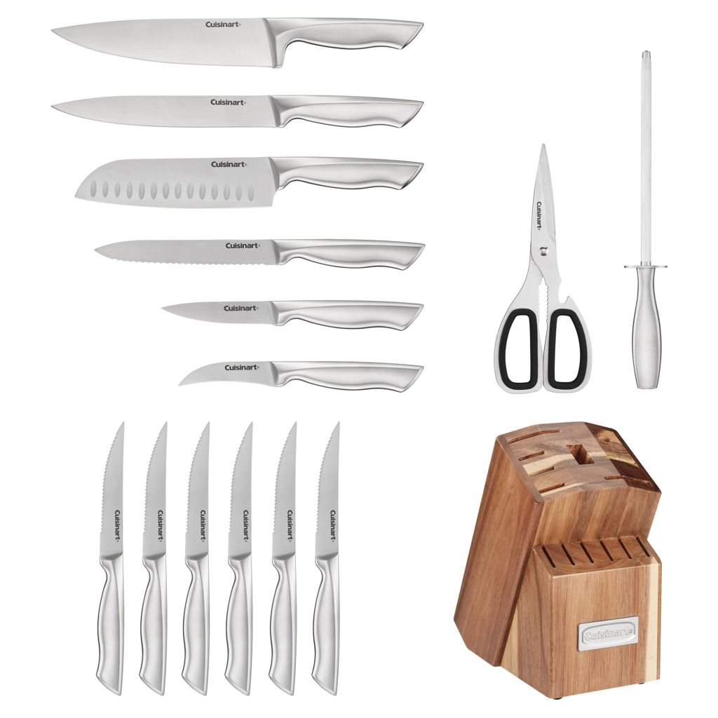 Cet ensemble haut de gamme de 15 pièces de la collection Elite de Cuisinart est doté de manches creux offrant un équilibre et une maîtrise exceptionnels, ainsi que de lames en acier inoxydable allemand assurant une précision durable.