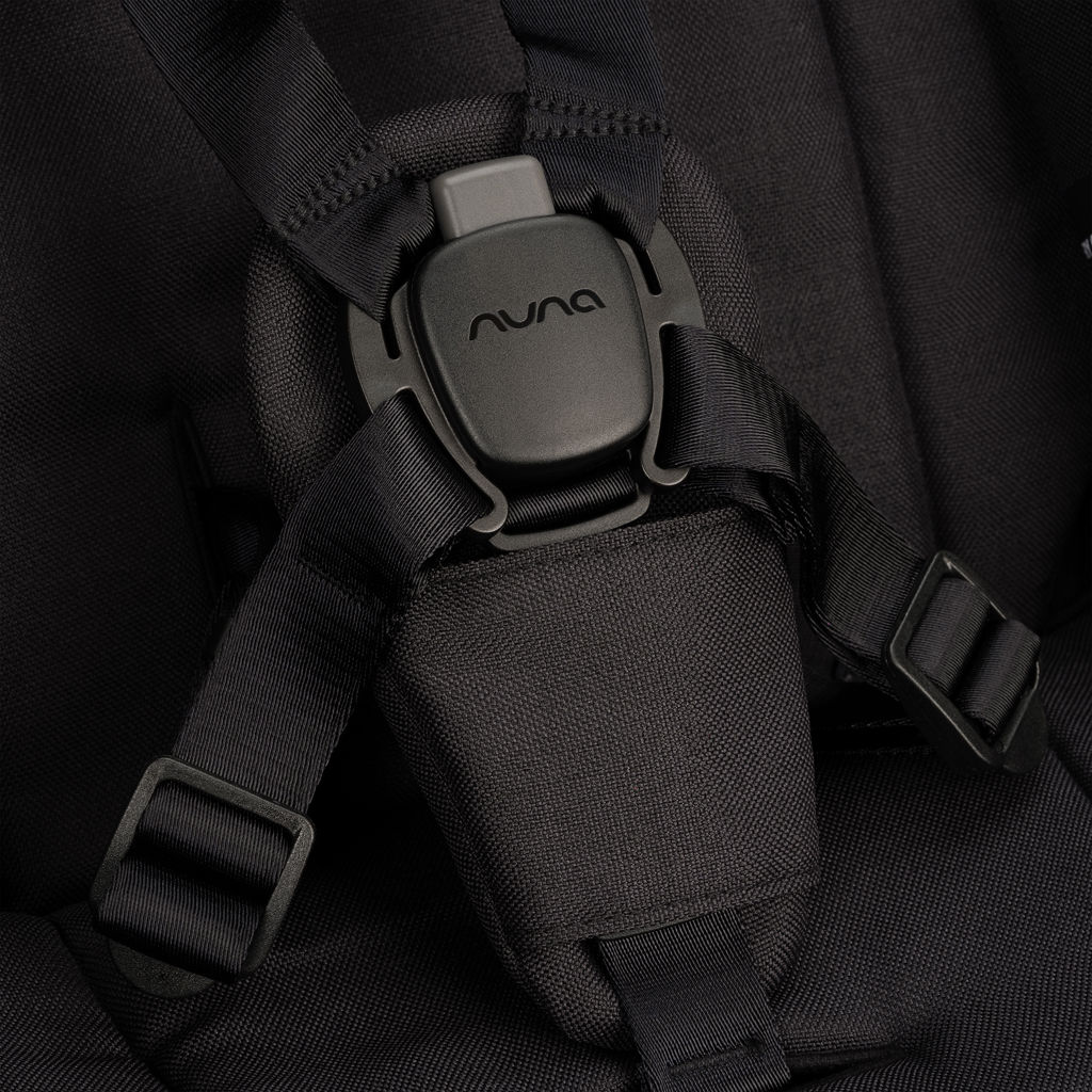 Cadre qui se plie facilement d´une main et qui tient debout une fois plié. À 11,4 kg (25,2 lb), cette poussette double est très légère; une fois fermée, elle se transporte derrière vous comme une valise au moyen de la barre d´appui. Boucles MagneTech Secure Snap™ à fermeture magnétique autoguidée gui se verrouillent automatiquement. Harnais sans démontage de trois à cinq points qui facilite l´installation de bébé.