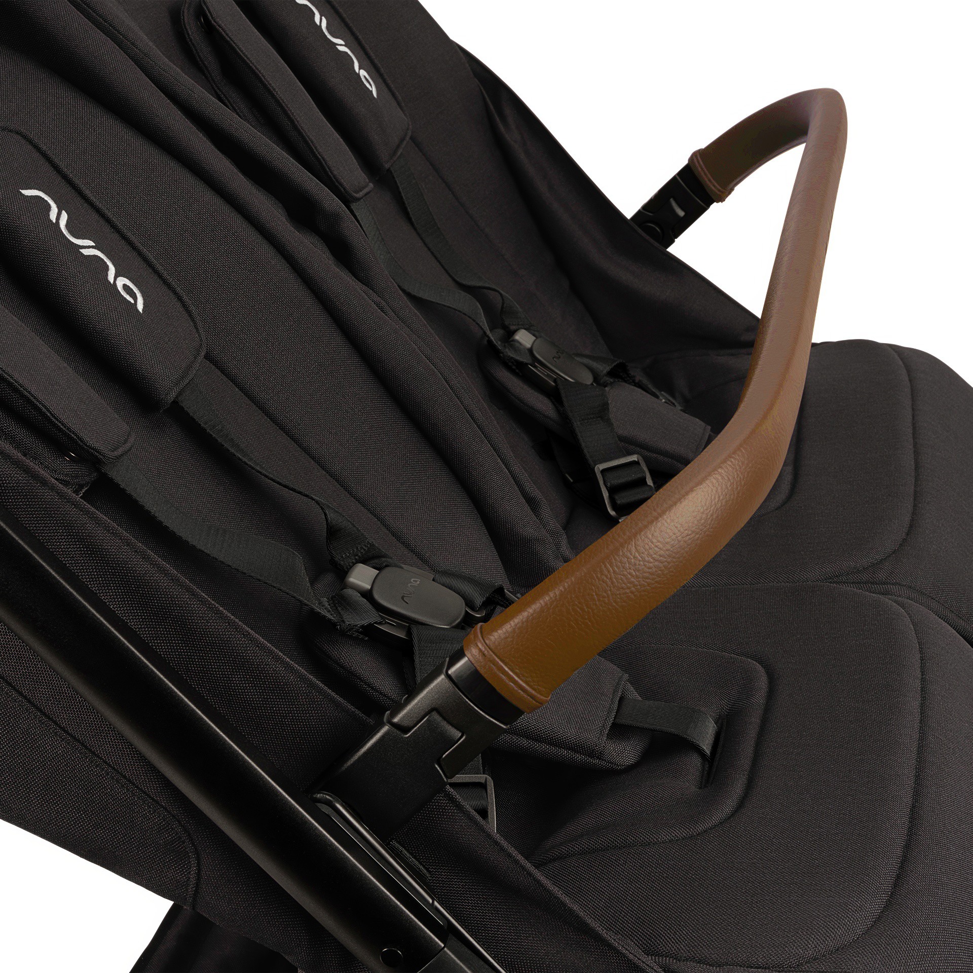 Prête pour le système de voyage : il suffit d´installer un siège d´auto pour bébé PIPA sur le siège le plus large de la poussette; aucun adaptateur requis. Barre d´appui amovible et rotative qui couvre les deux sièges pour faciliter les entrées et les sorties.