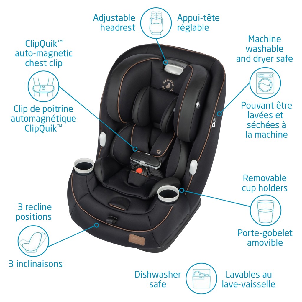 La conversion du siège d´auto transformable Tout-En-Un Pria, à chaque nouvelle étape, est simple et intuitive, ce qui vous permet de régler rapidement le siège d´auto. Il permet une large gamme d´adaptabilité avec son inclinaison à 3 positions, ses 5 hauteurs d´appui-tête et son harnais d´épaule QuickFit.