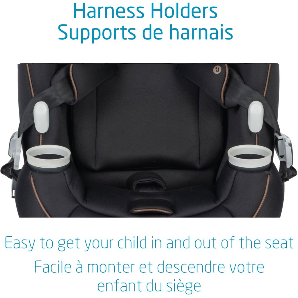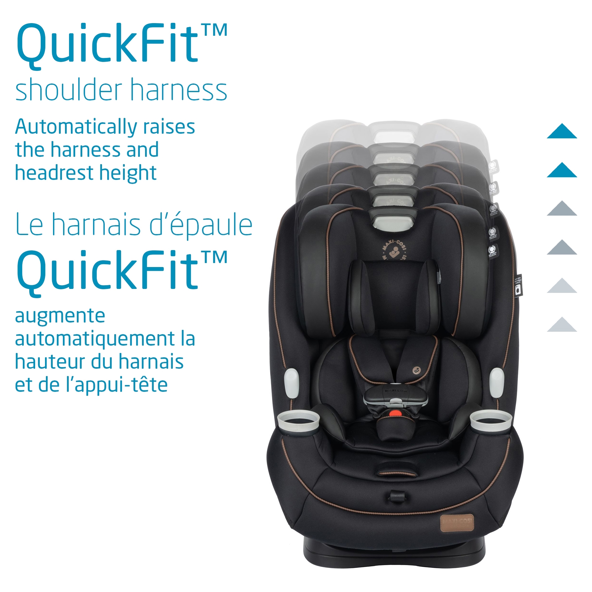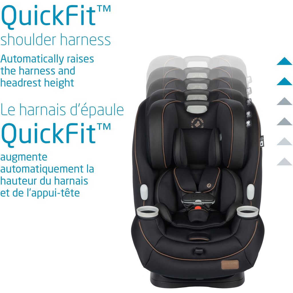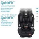 Le harnais d´épaule QuickFit soulève automatiquement la hauteur du harnais et de l´appui-tête pour s´adapter à votre enfant en pleine croissance. Il est important d´avoir la flexibilité de personnaliser votre siège d´auto pour vous assurer que vous gardez la sécurité là où vous en avez besoin.