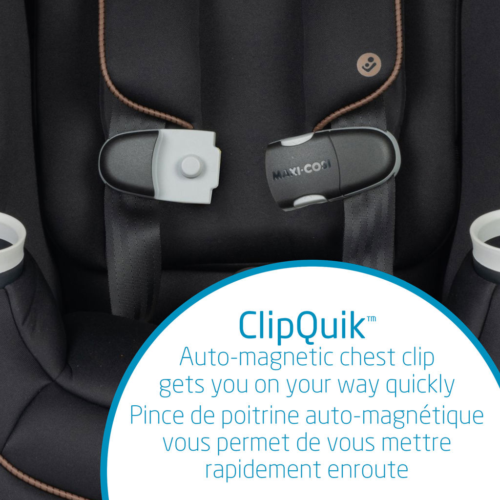 Vous comprendrez à quel point il est facile d´installer et de retirer votre enfant du siège avec l´attache de harnais magnétique, d´une seule main, ClipQuickTM, boucler et détacher se fait sans effort.