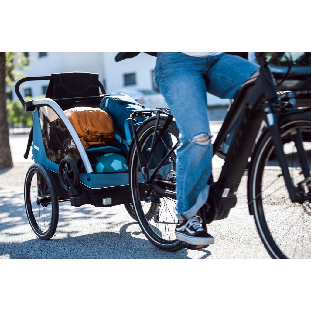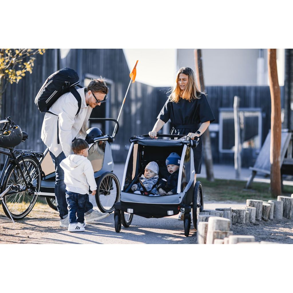 Thule Courier est une remorque pour vélo polyvalente pour tous les types de famille. Cette remorque durable est parfaite pour les longues promenades en famille ou pour les sorties rapides en ville grâce à son habitacle pouvant accueillir deux enfants.