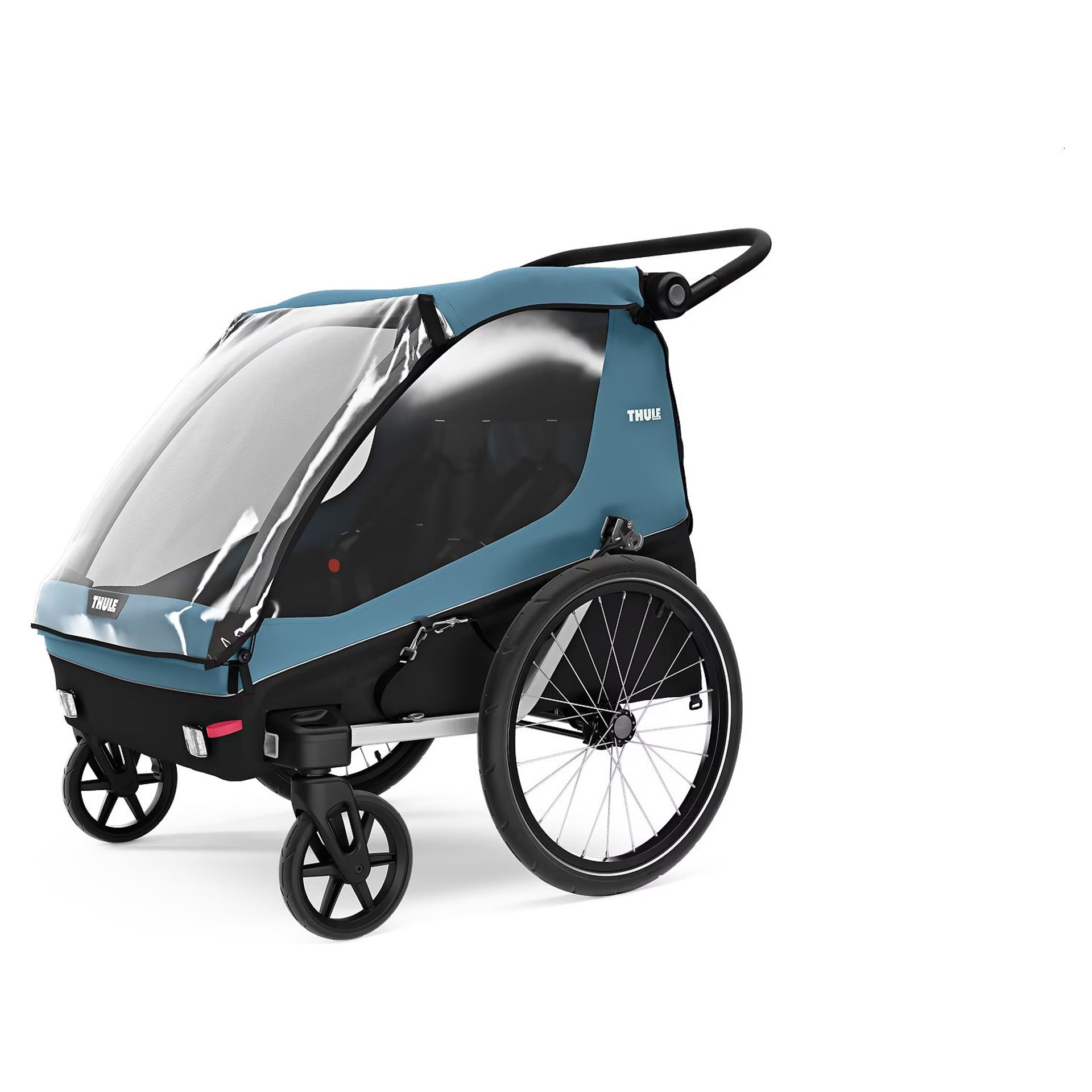 C'est un excellent porte-vélos et une excellente poussette. Sans compromis. Thule Courier comporte deux roues de poussette, ainsi qu'un ensemble pour remorque de vélo Thule pour faciliter les déplacements.