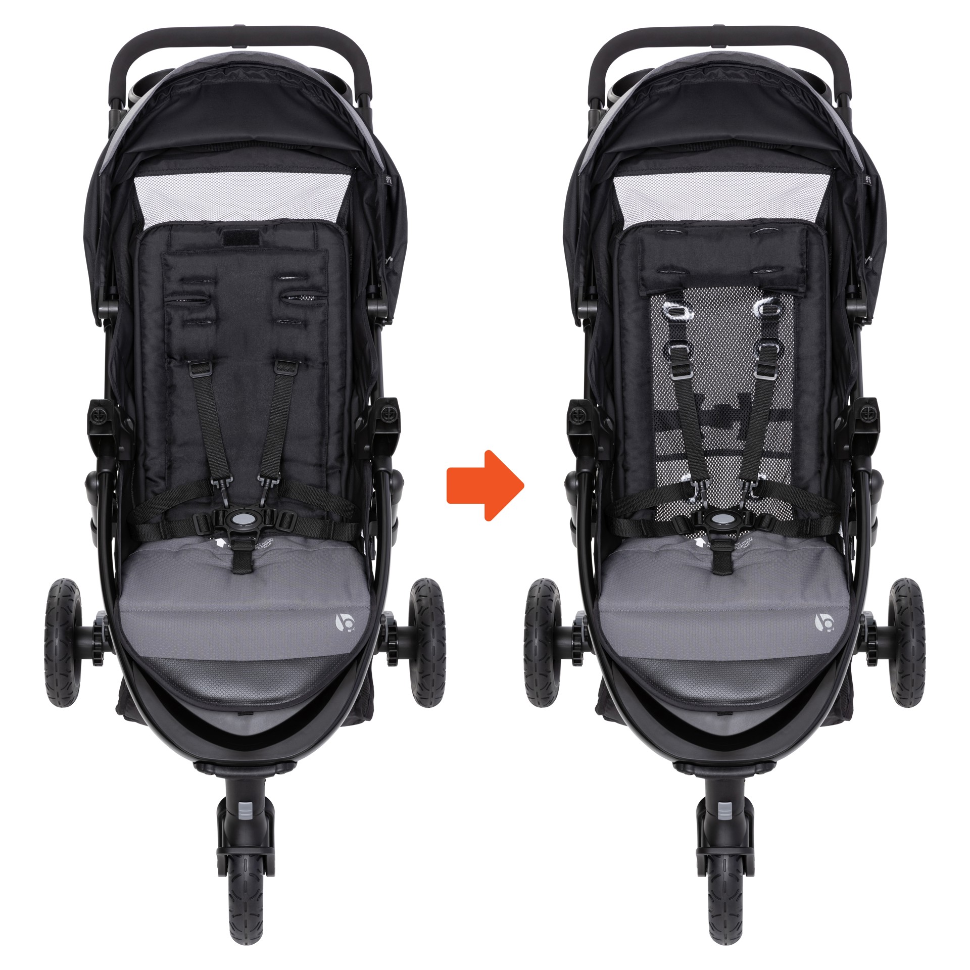 Le dossier souple du dossier s'enroule pour se transformer en un dossier de siège en maille à flux d'air avec oreiller pour offrir à votre enfant une ventilation et un confort amélioré par temps chaud.