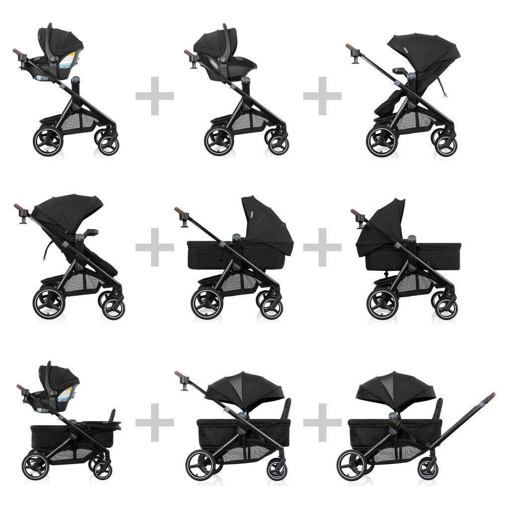 Le 1er système de voyage modulaire poussette-charrette qui se transforme grâce à 9 modes d'utilisation, du siège auto pour bébé (3 – 30 lb) à la poussette pour tout-petit (jusqu'à 55 lb), en passant par la charrette (jusqu'à 2 enfants, 55 lb chacun) - tout en un !