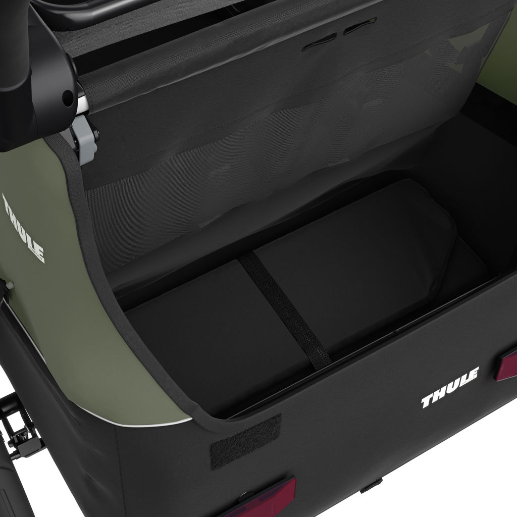 Le Thule Courier se transforme facilement en remorque. Grâce à son plancher de chargement robuste et durable et à ses points d'attache intégrés, votre équipement reste parfaitement en place.