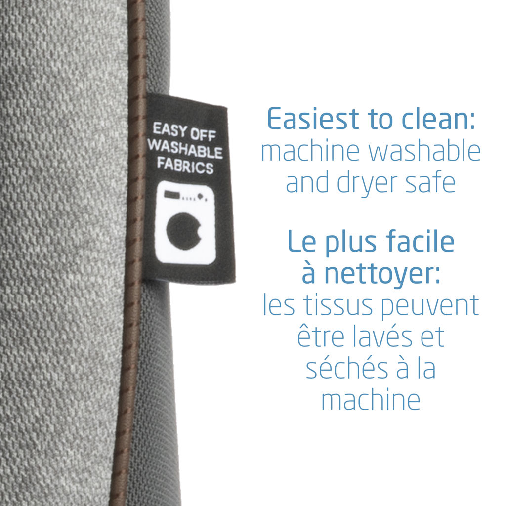Les tissus du Pria Tout-En-Un sont conçus pour garder votre tout-petit confortable et douillet. Les housses sont faciles à enlever, lavables à la machine et vont dans la sécheuse.