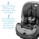 La conversion du siège d´auto transformable Tout-En-Un Pria, à chaque nouvelle étape, est simple et intuitive, ce qui vous permet de régler rapidement le siège d´auto. Il permet une large gamme d´adaptabilité avec son inclinaison à 3 positions, ses 5 hauteurs d´appui-tête et son harnais d´épaule QuickFit.