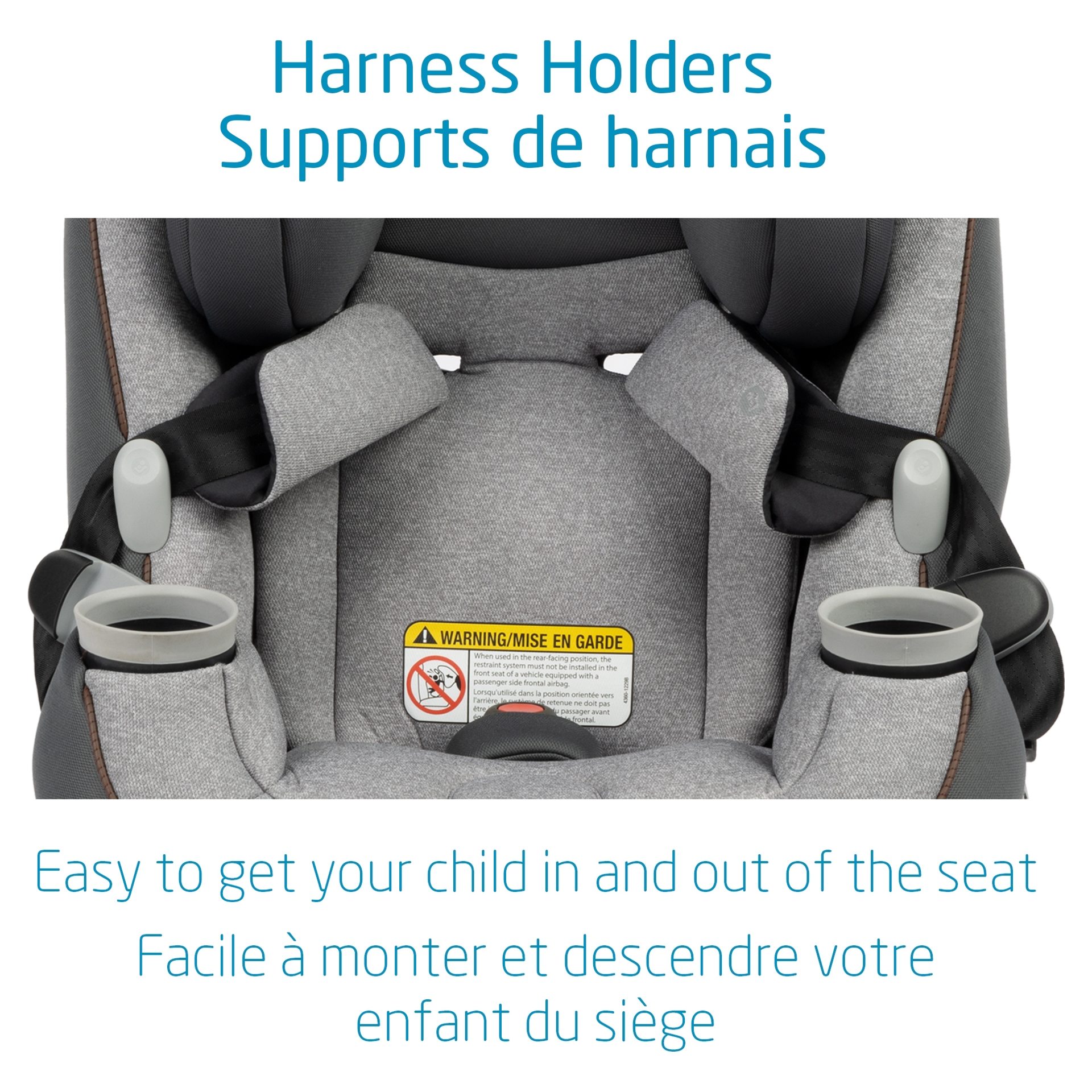 Le harnais d´épaule QuickFit soulève automatiquement la hauteur du harnais et de l´appui-tête pour s´adapter à votre enfant en pleine croissance. Il est important d´avoir la flexibilité de personnaliser votre siège d´auto pour vous assurer que vous gardez la sécurité là où vous en avez besoin.