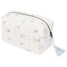 Notre trousse de toilette matelassée en coton bio est ornée de nos imprimés uniques et d'un pompon élégant. Une trousse pratique et élégante pour ranger vos affaires de toilette, votre maquillage, vos couches et vos crèmes, ou encore vos affaires de toilette pour bébé. Elle est également dotée d'une poche intérieure élastique pratique. Un produit idéal pour les parents et leur bébé, aux multiples usages.
