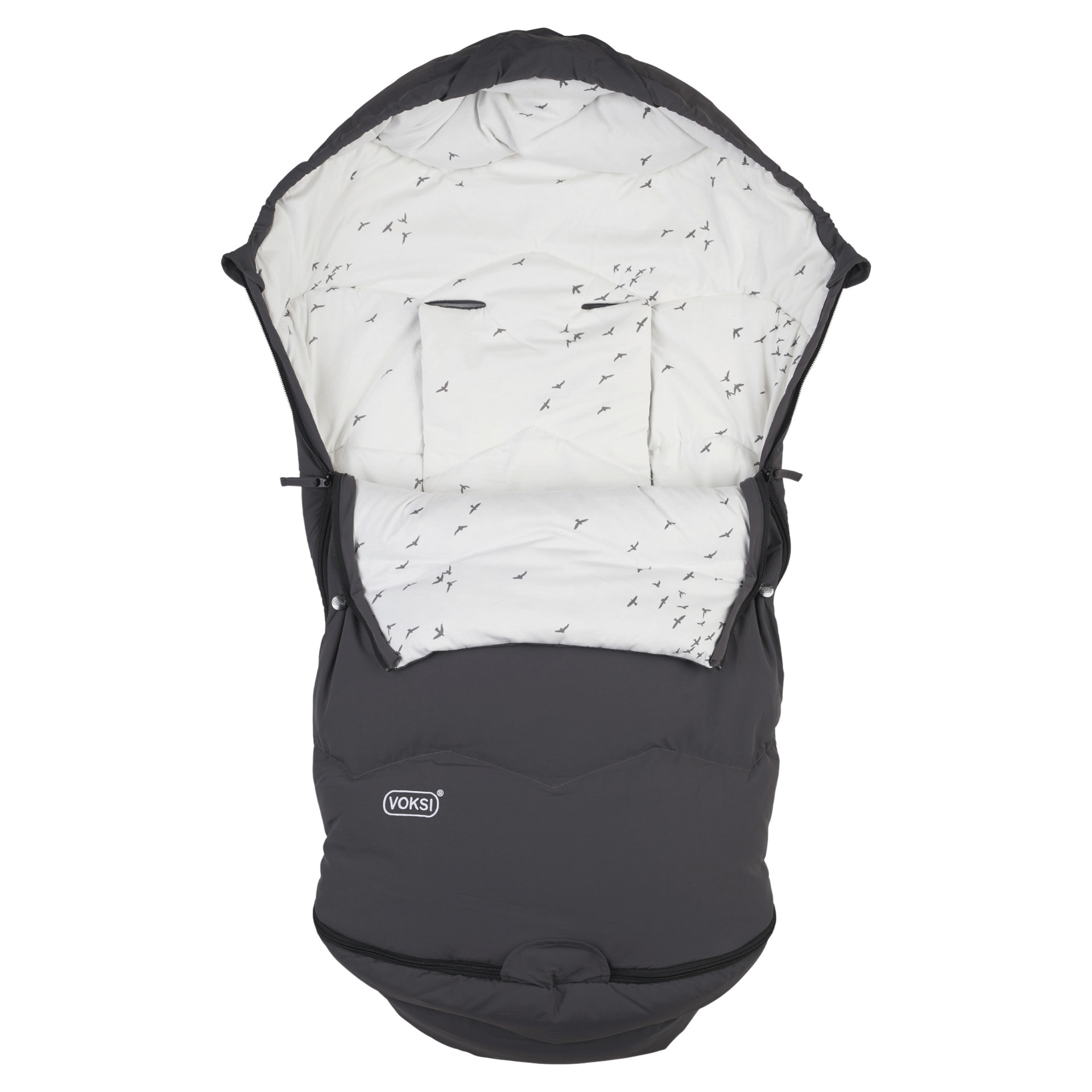 La gigoteuse pour poussette Voksi Explorer peut être utilisée aussi bien dans un landau et une poussette. La gigoteuse pour poussette s'ouvre sur les côtés grâce à une fermeture éclair de chaque côté, qui peut être ouverte soit par le haut, soit par le bas, afin de faciliter l'entrée de l'enfant.