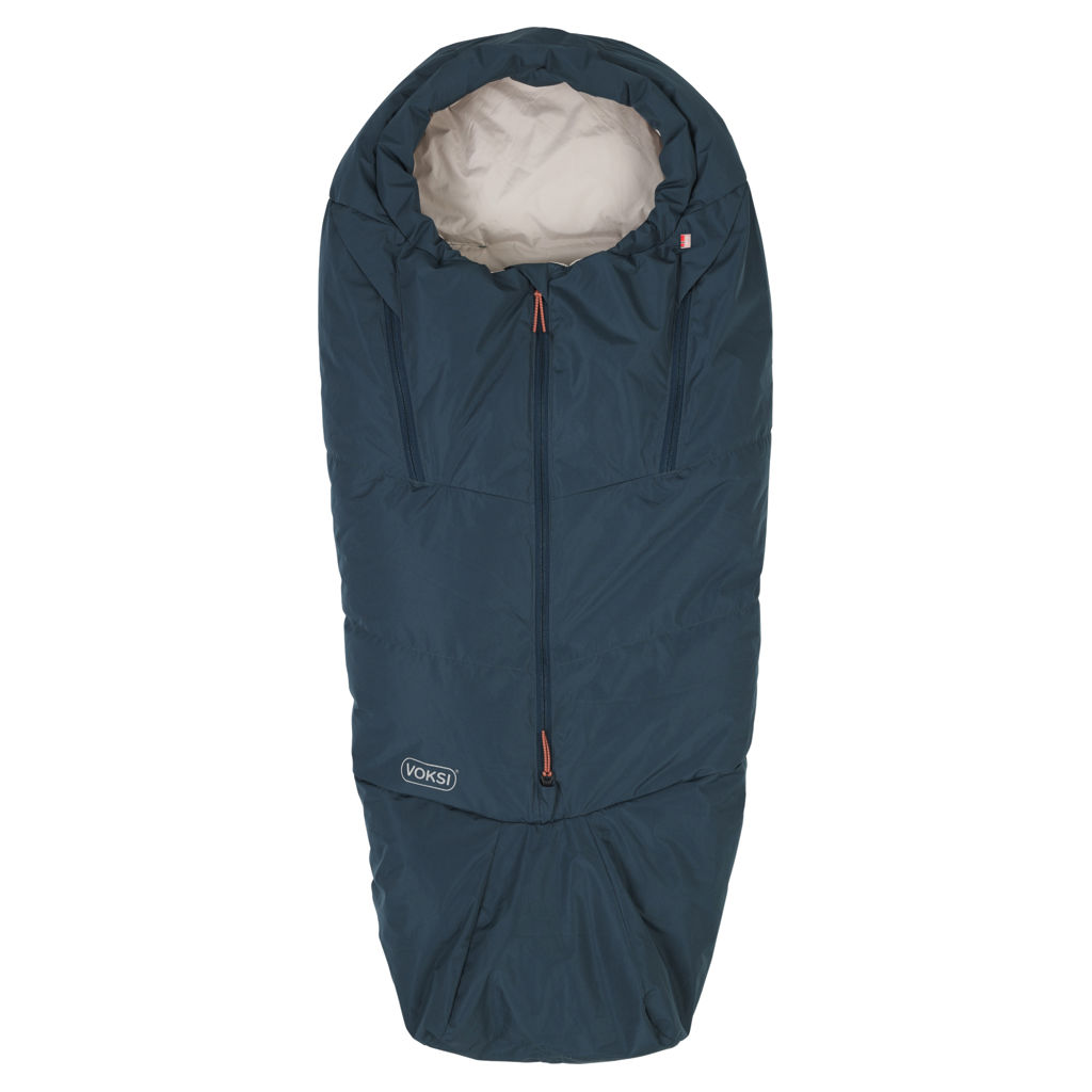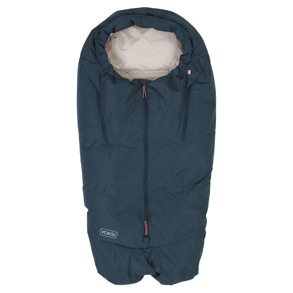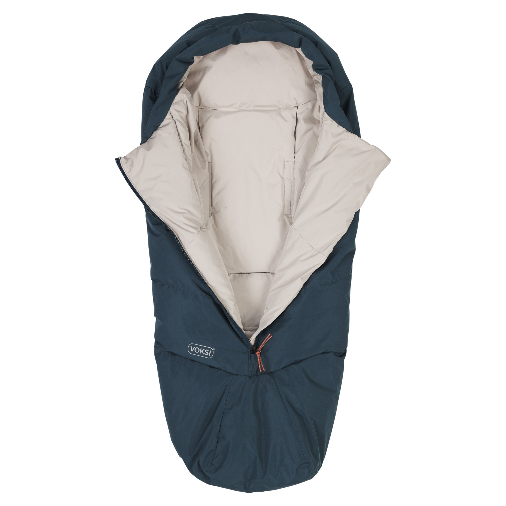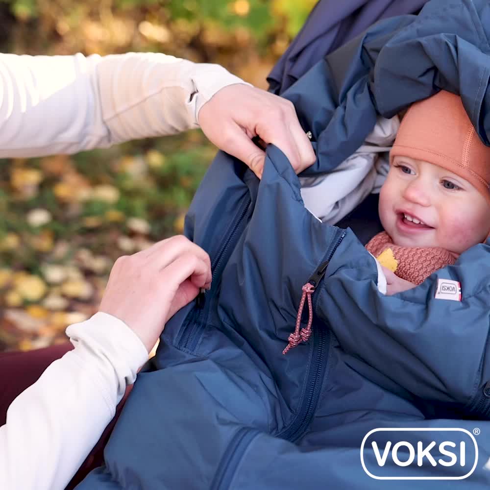 Le gigoteuse pour poussette Voksi Adventure s'ouvre grâce à une fermeture éclair au milieu, qui peut être ouverte soit par le haut, soit par le bas, ce qui permet à l'enfant d'y entrer facilement.