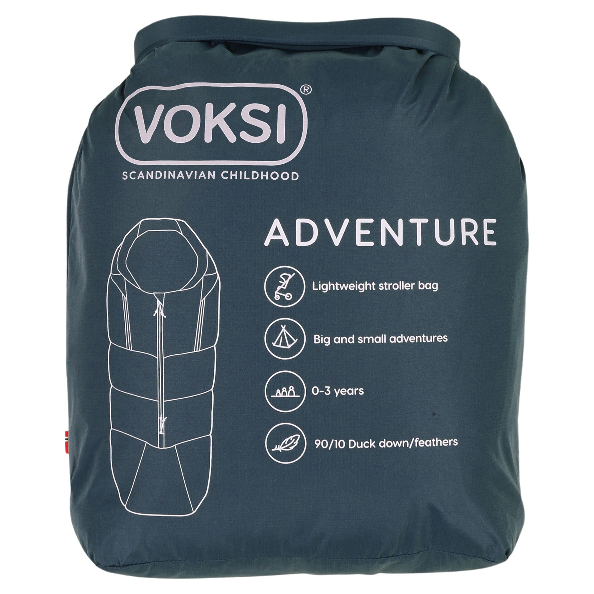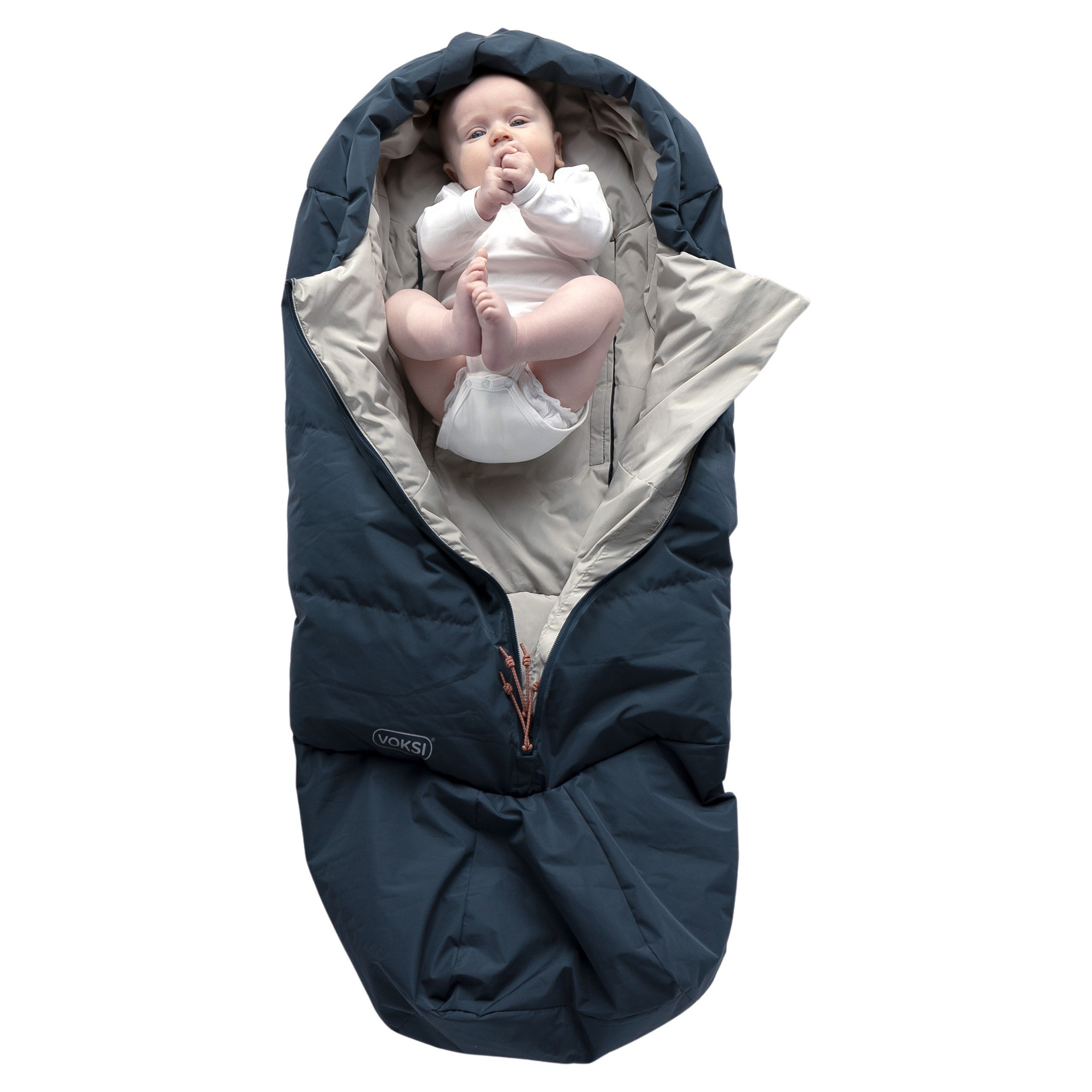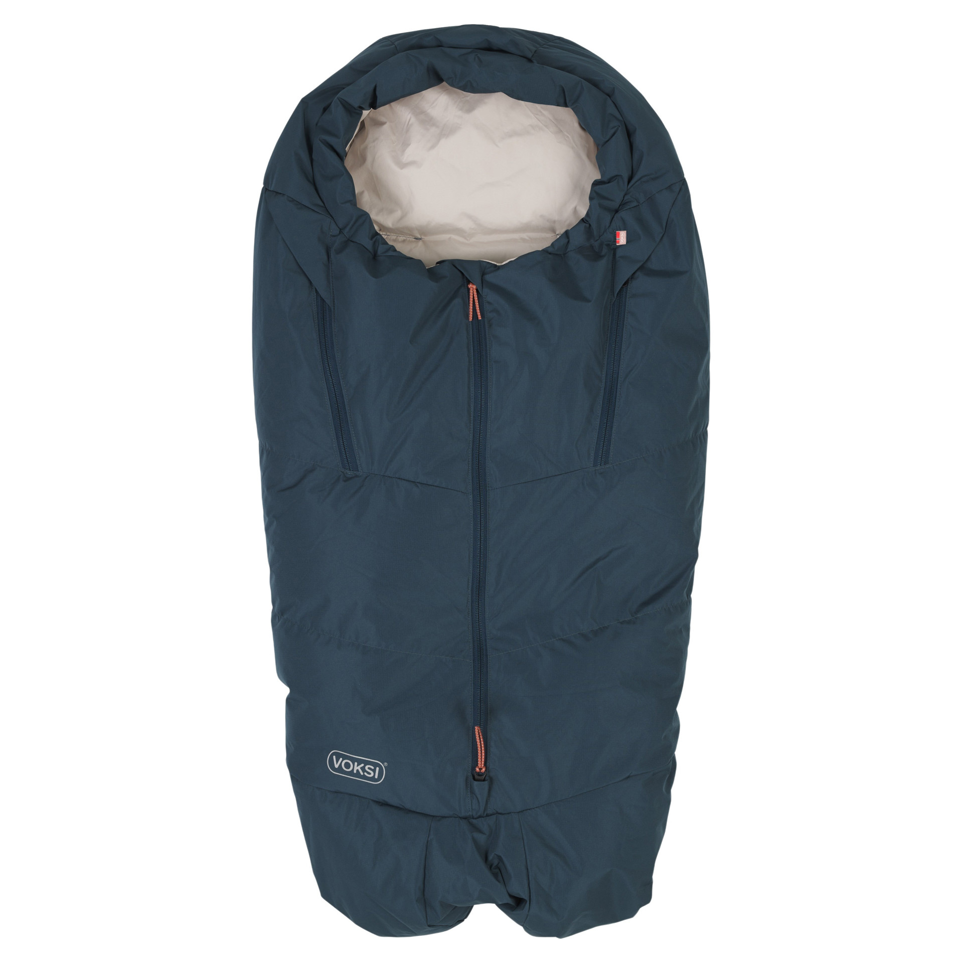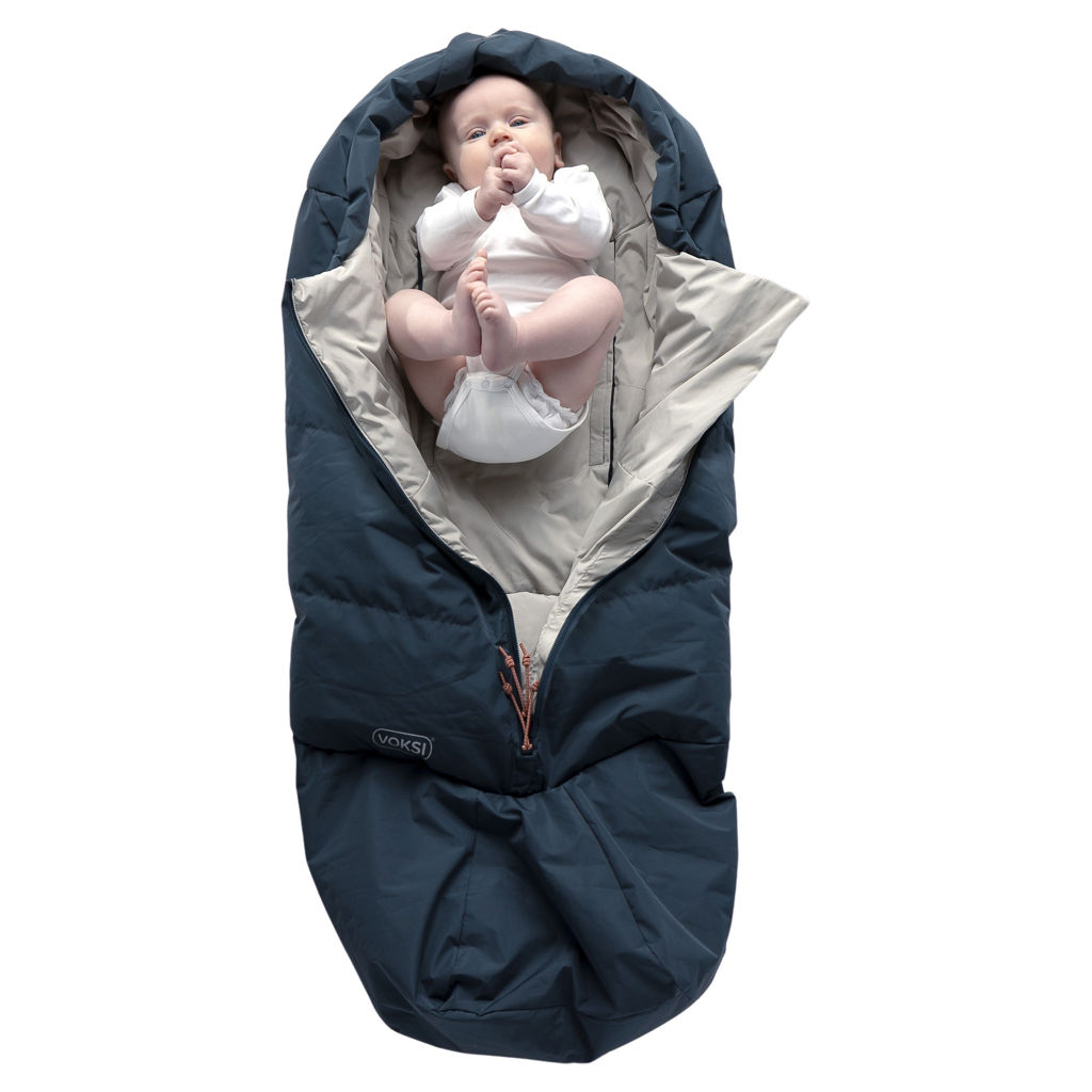 Le gigoteuse pour poussette Voksi Adventure s'ouvre grâce à une fermeture éclair au milieu, qui peut être ouverte soit par le haut, soit par le bas, ce qui permet à l'enfant d'y entrer facilement.