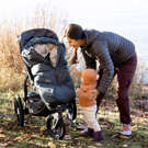 La conception unique des ouvertures arrière s'adapte à toutes les bretelles et est donc parfait aussi bien pour les poussettes, les poussettes à vélo que les luges. Le cordon autour de la tête peut être ajusté en fonction des conditions météorologiques et des préférences de l'enfant.