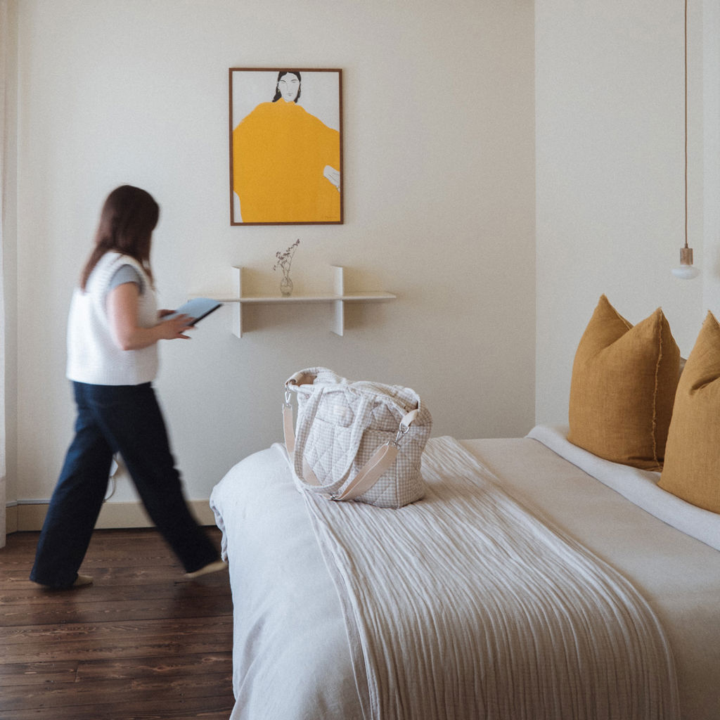 Notre préféré fait avec un coton vichy biologique. Voici LE sac pour transporter tout ce qu'il faut pour vous et vos minis.