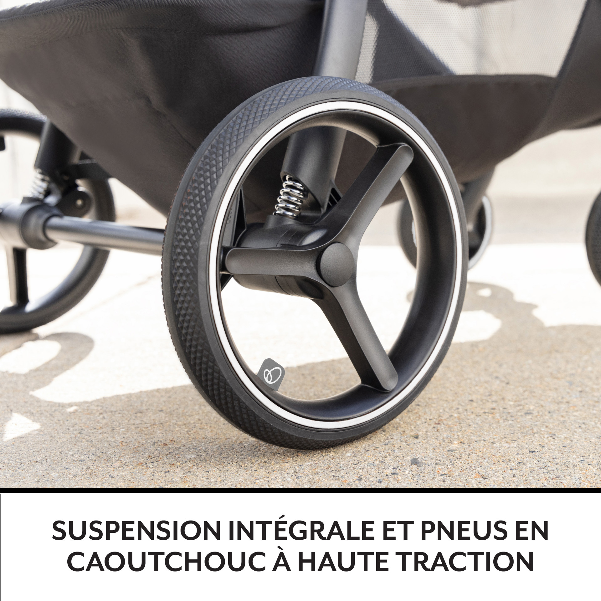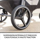La poussette Shyft Intuiti à suspension intégrale et pneus en caoutchouc de haute qualité, offre une conduite souple et une maniabilité intuitive.