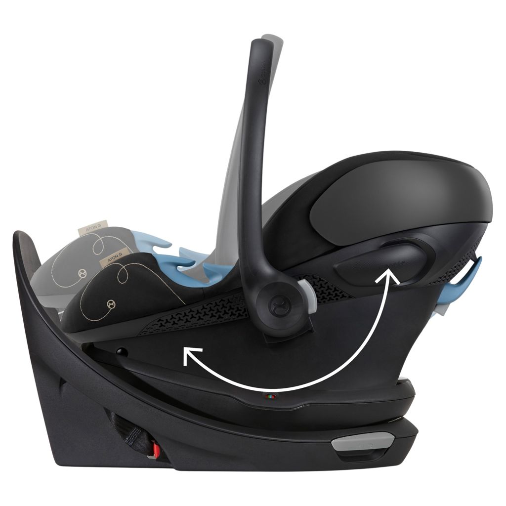 L'Aton G Swivel de CYBEX permet une rotation de 180 degrés tout en offrant un maximum de commodité et de sécurité sans compromettre le concept. La base pivotante à 180 degrés offre un pivotement ergonomique qui facilite plus que jamais le chargement et le déchargement de l'enfant du porte-bébé lorsque le siège est installé dans le véhicule, et des caractéristiques de sécurité avancées telles que la barre anti-rebond et le système de protection linéaire contre impact latéral réduisent les forces de collision en cas d'accident.