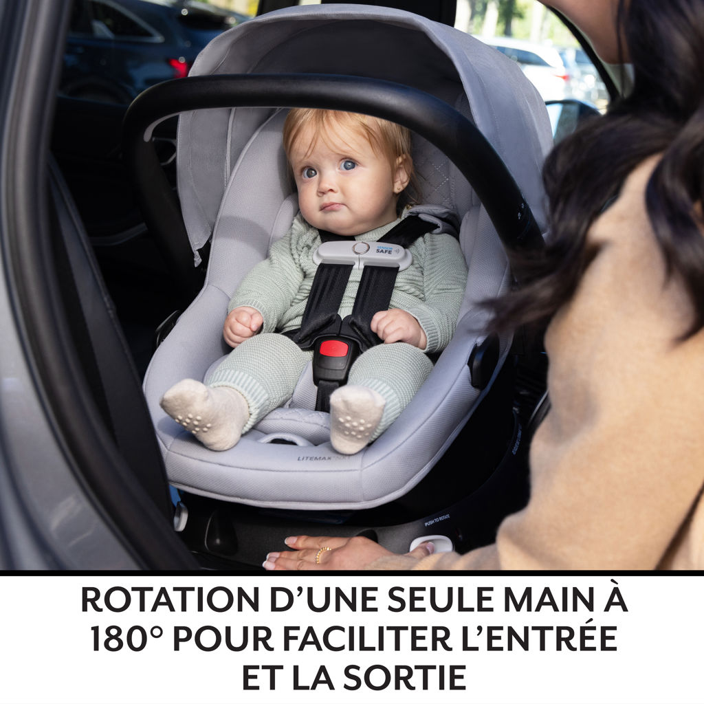 Pour les nourrissons de 1,4 à 10 kg (de 40 à 74 cm), la rotation à 180° d'une seule main de ce siège d´auto pour nourrisson change la donne. Cela permet de tourner votre enfant vers vous pour simplifier l'embarquement et le débarquement, particulièrement pratique lorsque l'espace à l'arrière est restreint.