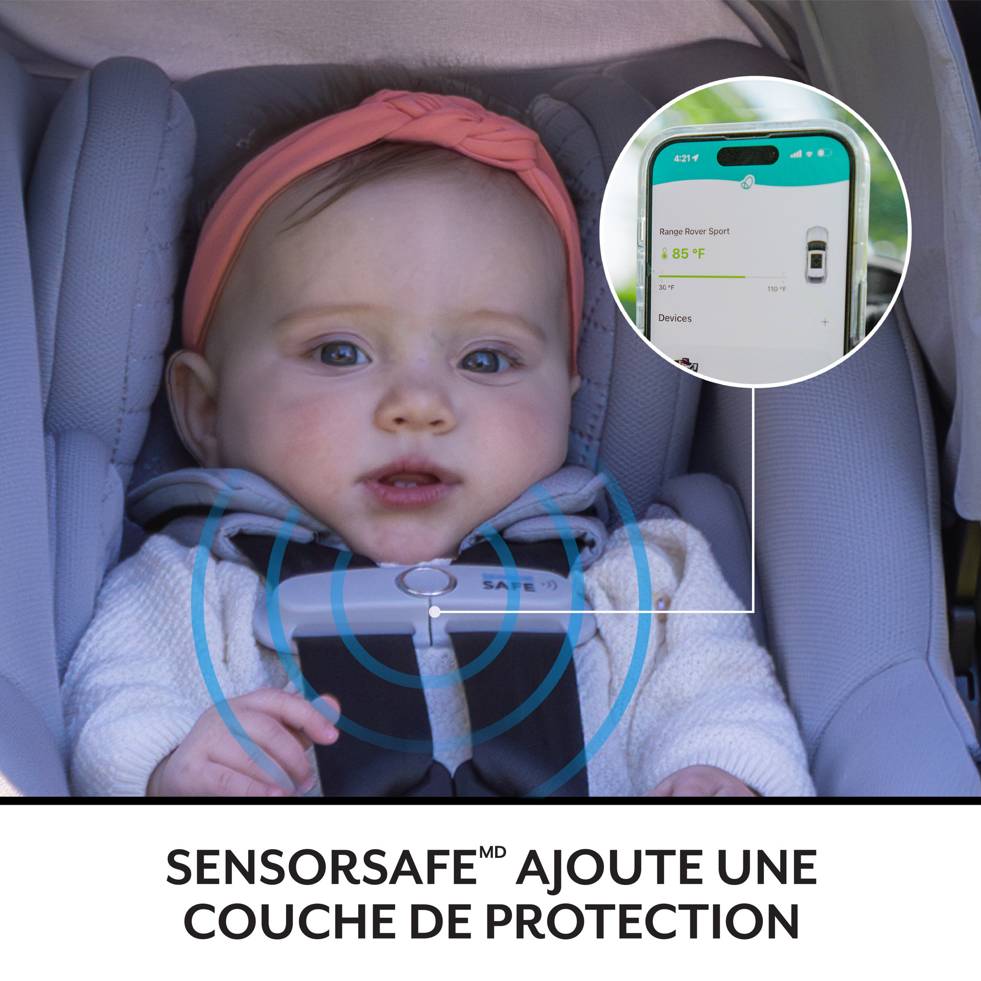 La technologie SensorSafe intégrée ajoute une couche de protection pour une tranquillité d'esprit, vous alertant en temps réel de 4 conditions potentiellement dangereuses depuis le siège d'auto de votre enfant via la technologie sans fil BluetoothMD :