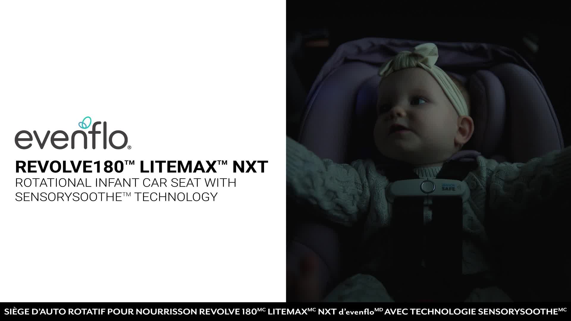 La commodité de niveau NXT lors de déplacements avec votre petit commence avec le siège d'auto rotatif pour nourrisson Revolve180 LiteMax NXT d'Evenflo avec SensorSafe.