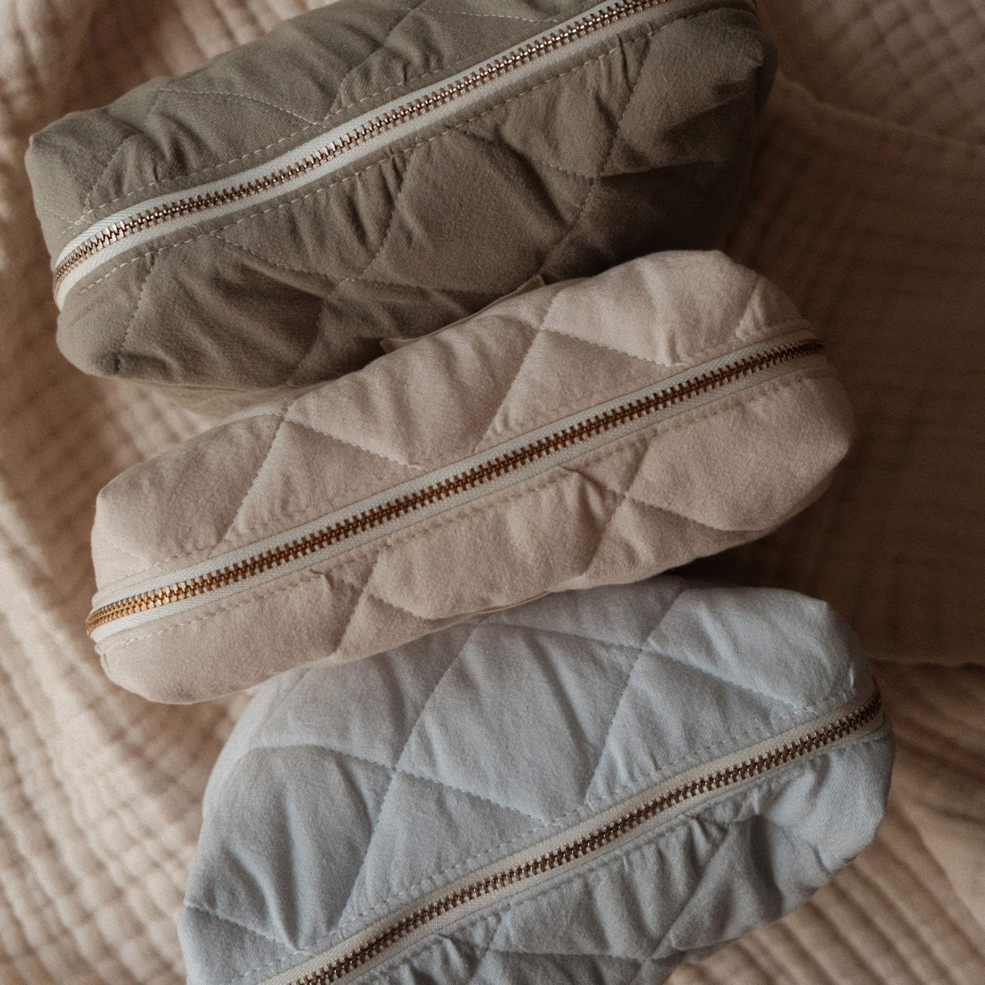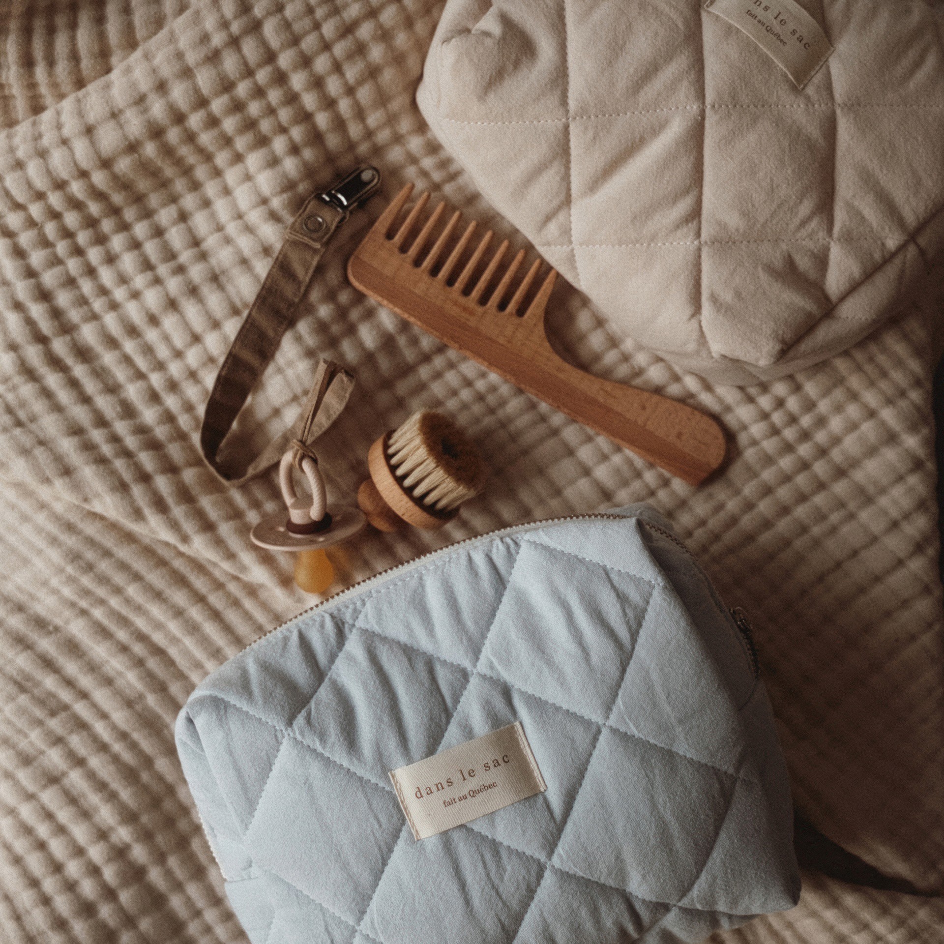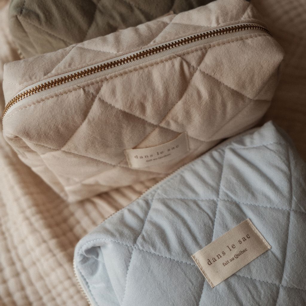 Fabriquée avec soin au Québec, cette pochette matelassée est idéale pour ranger vos médicaments, produits de beauté, articles d'hygiène, crayons ou essentiels pour bébé.